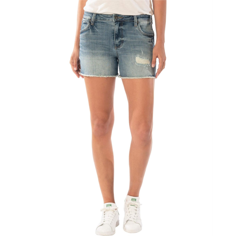 - The KUT from the Kloth Gidget High-Rise Frey Jean Shorts are the perfect choice for your casual days with a higher rise and frayed hem.