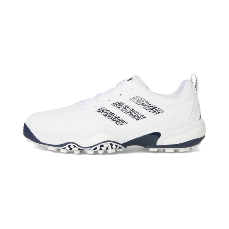 The primary materials that compose this product contain a minimum of 20 percent recycled content.- Redefine your game-one swing at a time wearing adidas Golf Codechaos 25 Spikeless Shoes, where cutting-edge design meets unbeatable performance. Featuring a sleek, multi-layered waterproof knit upper and a TWISTGRIP outsole, they deliver unrivaled traction from tee to green. The BOOST midsole energizes every stride, while the Lightstrike cage and 3D Torsion System provide dynamic support and stability for powerful swings. Crafted with a faux leather upper, leather lining, and sustainable materials, these shoes keep your game eco-conscious. Lace-up confidence, stay dry in any weather, and embrace comfort that lasts for extra holes.