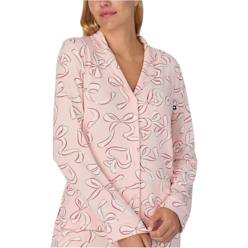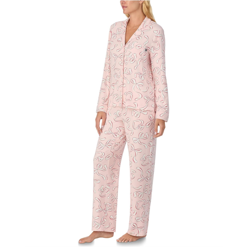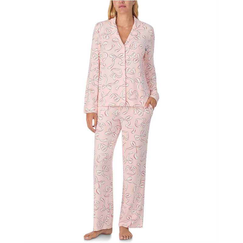 - The Kate Spade New York Brushed Sweater Knit Jersey Long Sleeve Notch Pajama Set blends effortless style with unmatched comfort, making nights in feel endlessly luxurious. Crafted in a soft brushed sweater knit jersey, this set offers a regular fit that drapes beautifully while keeping you cozy. The notch lapel collar and button-front closure add a touch of tailored polish, while the long sleeves ensure year-round comfort. Thoughtful details like a chest pocket and slant pockets on the pajama pants bring functionality to your lounging look. Designed with a pull-on pajama bottom for ease, its perfect for unwinding after a long day or enjoying slow, relaxing mornings.