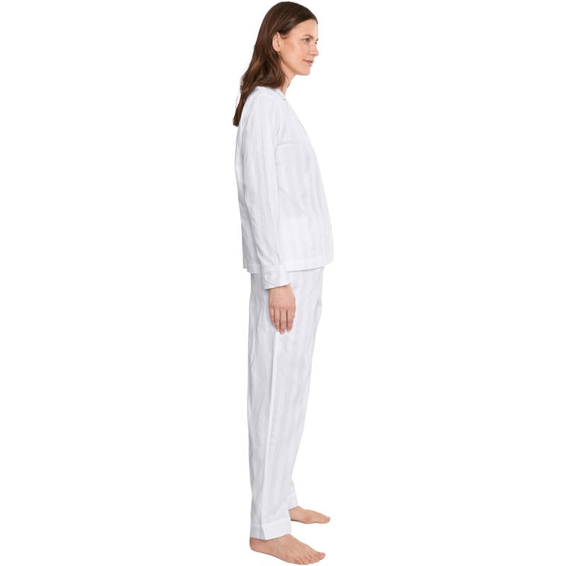 - Slip into pure sophistication styling the Lauren Ralph Lauren Woven Long Sleeve Notch Collar Long Pant Pajama Set. Featuring a tailored notch-collared neckline and polished button-front closure, this set brings a dash of elegance to your downtime. Long sleeves and a chest pocket add refined detail, while the elasticized waist and easy pull-on pants ensure a relaxed, effortless fit. The woven fabric drapes smoothly for a breathable, all-night embrace.