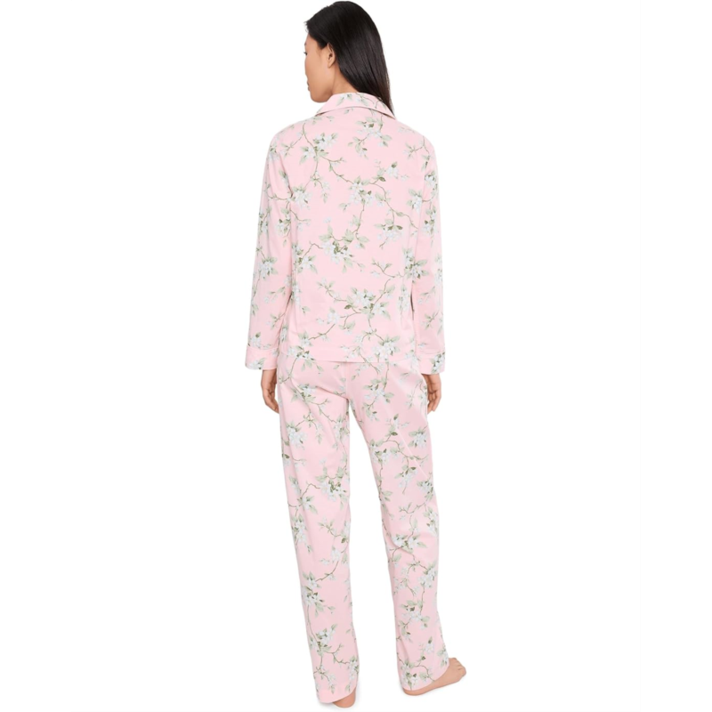 [US] POLO Ralph Lauren Womens Lauren Ralph Lauren Cotton Lawn Long Sleeve Notch Collar Long Pants Pajama Set