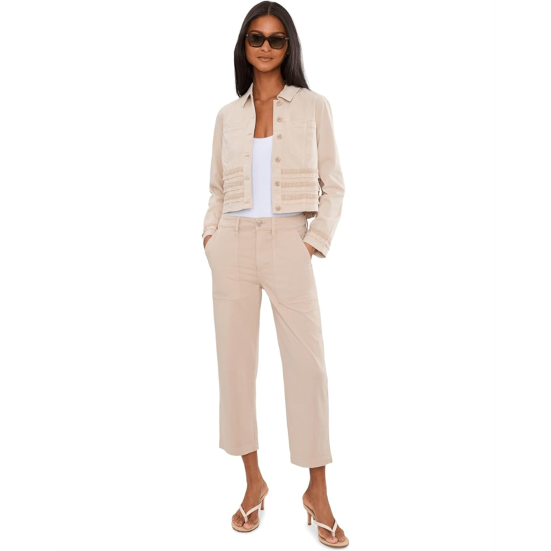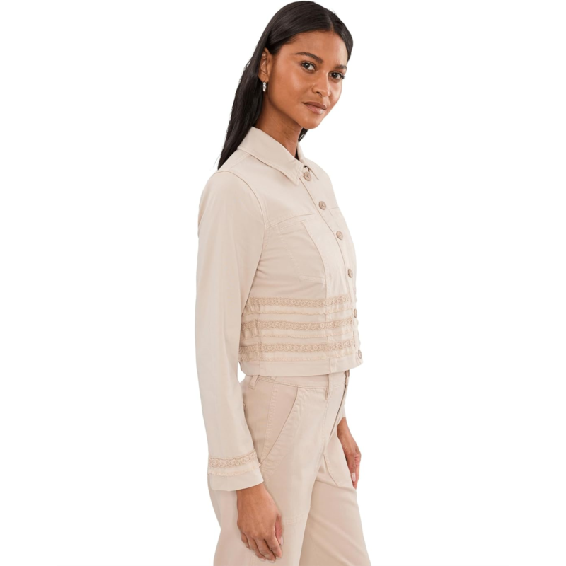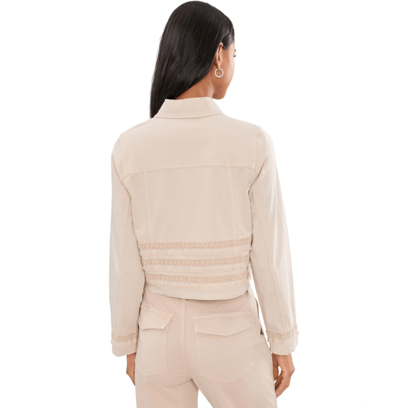 - Crafted in signature Soft Touch Twill, the Liverpool Los Angeles Petite Trucker Jacket with Fray and Lace gets a modern update with a subtle fray and lace detailing. Polished yet easy, its the perfect layer to pair with anything.