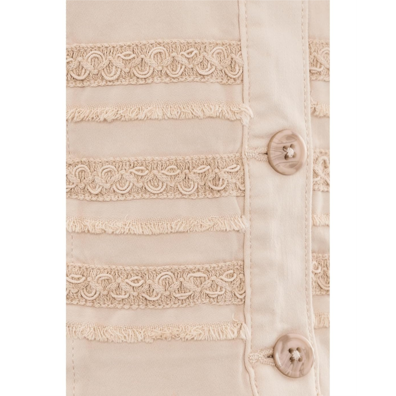 [US] Womens Liverpool Los Angeles Petite Trucker Jacket with Fray and Lace