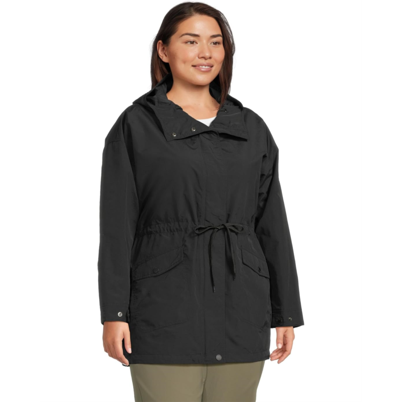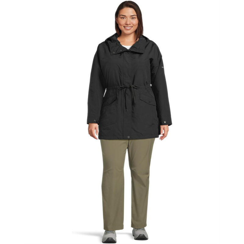 - The Columbia Plus Size Pardon My Jacket is designed to keep you protected and comfortable in light rain and wind. Made with water-and-wind-resistant fabric, it effectively sheds moisture and blocks drafts. The drawcord-adjustable hood, hem, and waist ensure a snug fit that seals out the elements, while the back venting adds breathability for extra comfort. The front two-way zipper closure, complete with a flap cover, prevents water from seeping in, making it a practical and reliable choice for variable weather conditions!