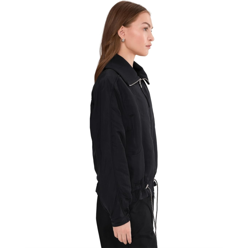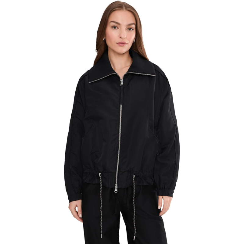- ThisVarleyLotta Blouson Jacket blouson in Shimmer Twill is the perfect mix of ease and elegance. Designed for relaxed days, it''s detailed with an exposed drawcord with ruffled trim and sleek piping along the sleeves for a subtle, stylish twist. This oversized fit jacket features zippered front closure, standard length, long sleeves, and side hand pockets.