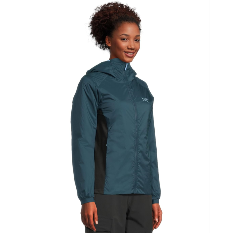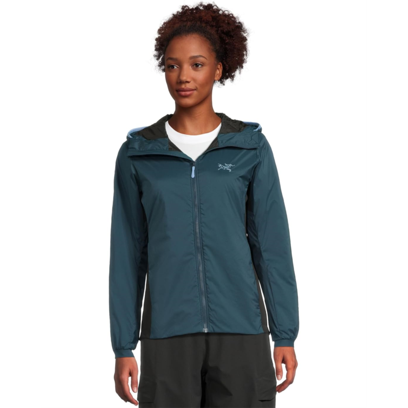 - Embrace the elements in the Arc''teryx Atom Hoodie, a versatile layer featuring Coreloft insulation for lightweight, breathable warmth even when wet. The Tyono 20 face fabric offers the perfect balance of wind protection and breathability, while the FC0 DWR finish keeps you dry without harmful chemicals. Designed for comfort and mobility, it includes stretch fleece side panels, an adjustable StormHood that provides warmth, and a recycled nylon liner. This packable jacket is finished with a No Slip Zip, secure zippered pockets, and easy-to-use thermoplastic polyurethane (TPU) zipper pulls.