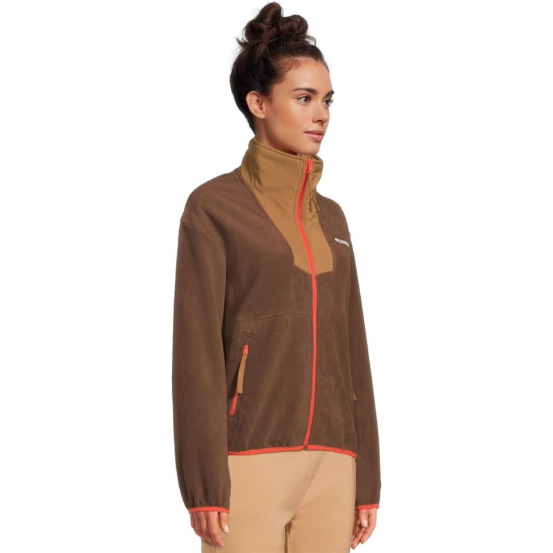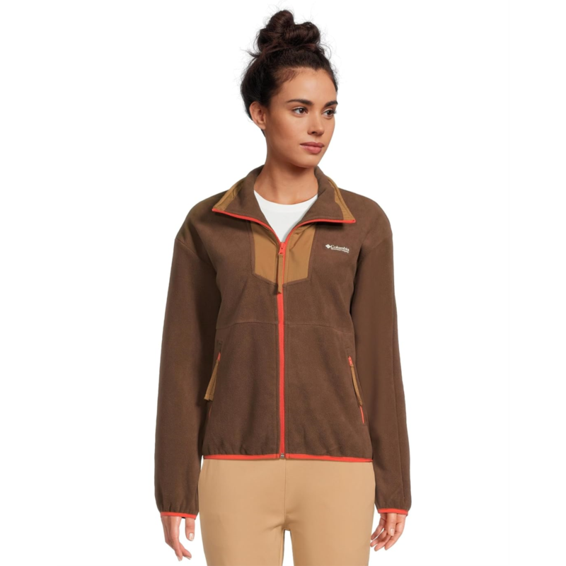 - The Columbia Sequoia Grove Full Zip Fleece Jacket makes an excellent layering piece for added comfort and warmth. The relaxed fit jacket features an easy reach full-zipper closure, spread collar, long sleeves, zippered hand pockets, and stretch binding at the cuffs & hem. The brand logo detail on the left chest and color-block design adds a stylish touch to the whole look.