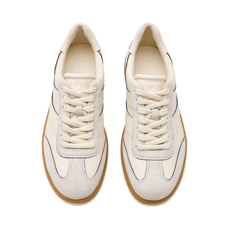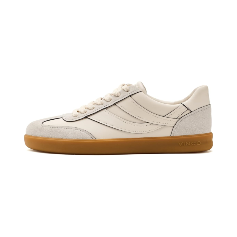 - An elevated take on a timeless, sporty silhouette, the Vince Oasis-M sneaker is crafted in a buttery leather and suede. Thoughtful details subtly nod to Californias coastal surfing scene, from the overlapping side-stripe accents reminiscent of swell breaks to a patterned rubber outsole inspired by ocean waves. The lace-up closure ensures a secure fit on the go.