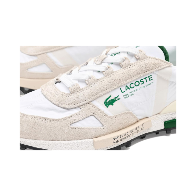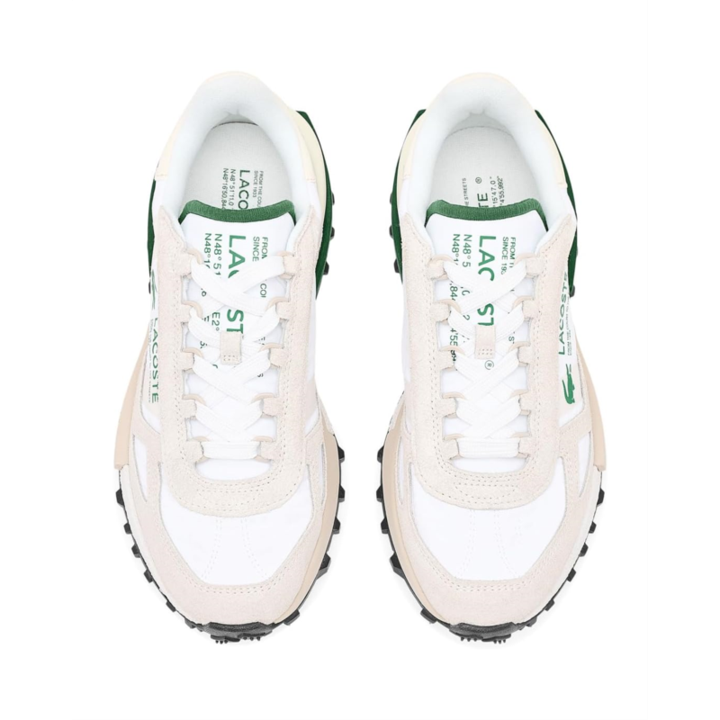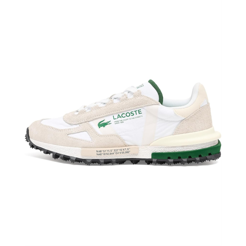 - Run for life or run for your own health, the Lacoste Elite Active Sneakers gives ultimate comfort. Crafted from unstructured nylon and suede upper, textile lining, and EVA insole, this pair of shoes features round toe, lace-up closure, shock-absorbing EVA midsole, TPU-reinforced heel for optimal support, rubber outsole with picots for maximum grip, printed crocodile on side, and printed branding on center panel, tongue and midsole.