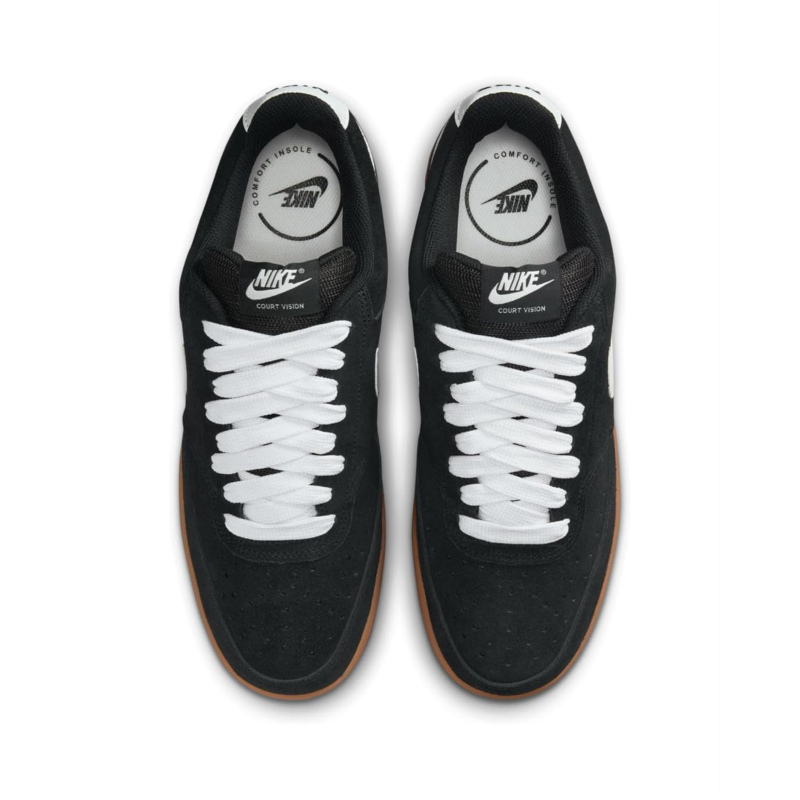 - The Nike Court Vision Low Flyease shoes are casual sneakers perfect to pair with your different outfits and styles. These low-top shoes are made of a rubber insole and a polyester lining. Their faux leather upper has a lace-up design that offers a perfect fit.