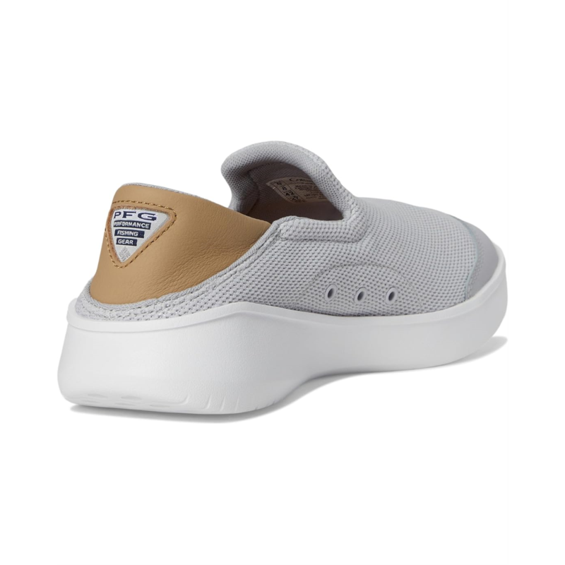 - Elevate your classy look wearing the Columbia Boatside Vent PFG. Crafted from canvas upper, cotton lining, and rubber insole, this pair of shoes features round toe, slip-on style, lightweight, soft and breathable mesh with leather collapsible heel and premium cork footbed, and low-top silhouette.