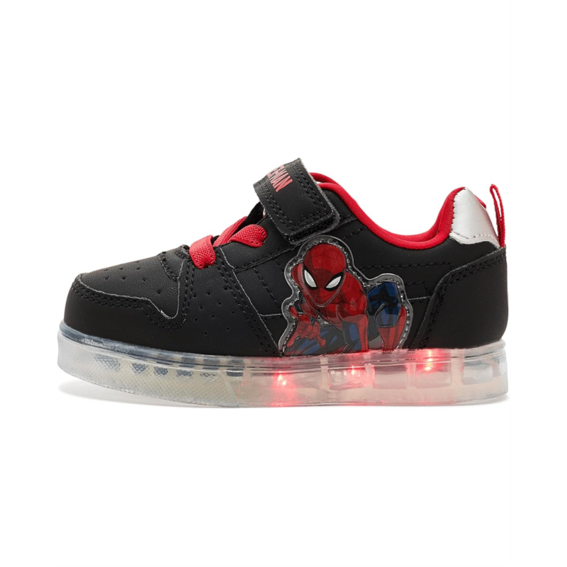 - Hes going to be ready for adventure in the Josmo Spiderman Sneakers. An easy-on/easy-off design features a hook-and-loop strap and an ankle pull tab. A multi-lighted translucent thermoplastic polyurethane outsole adds even more fun to the design.