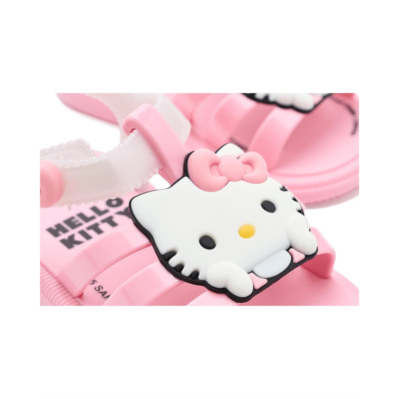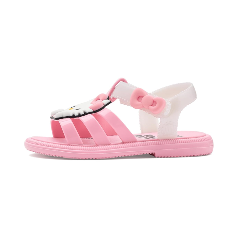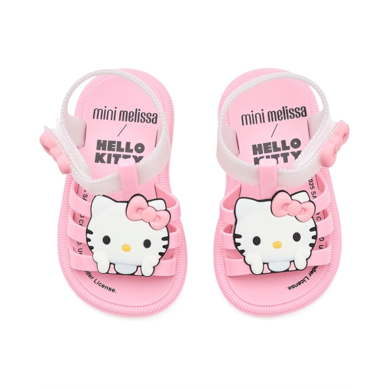- The Mini Melissa Kids Hip + Hello Kitty And Friends sandal is perfect for little ones who love playful style paired with everyday comfort. Made from Melflex polyvinyl chloride (PVC), the vamp, back strap, sole, upper strap, and ankle strap are all crafted from this soft, flexible, and durable material. This vegan sandal is also 100% recyclable, waterproof, and easy to clean.