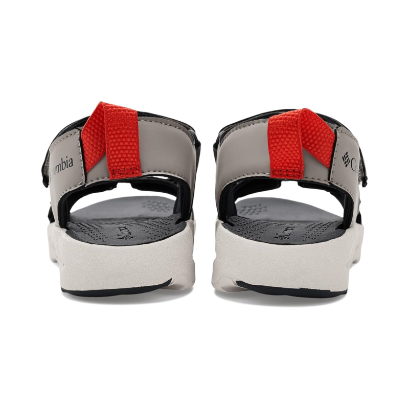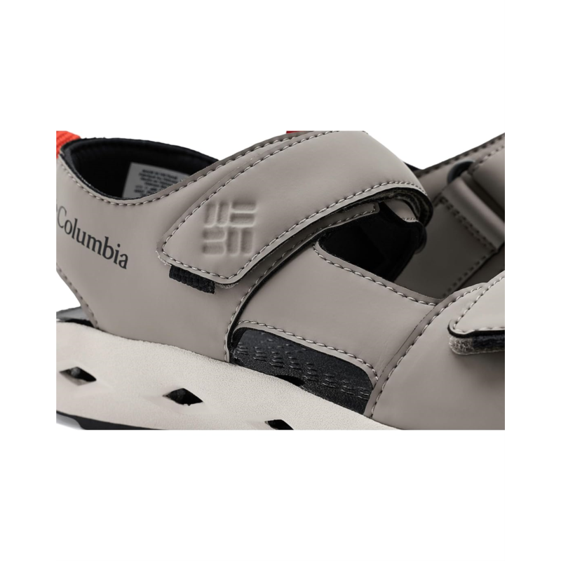 - Lightweight and easy to wear, these Columbia Kids Techsun Adventure sandals keep little feet cool and comfortable from playground fun to family outings. Crafted from synthetic upper, rubber cupsole construction with drop in ethylene vinyl acetate footbed, this pair of sandals features open round toe, midsole port holes for water evacuation, hook-and-loop closure on the midfoot and forefoot for customized adjustability, and back pull tab.