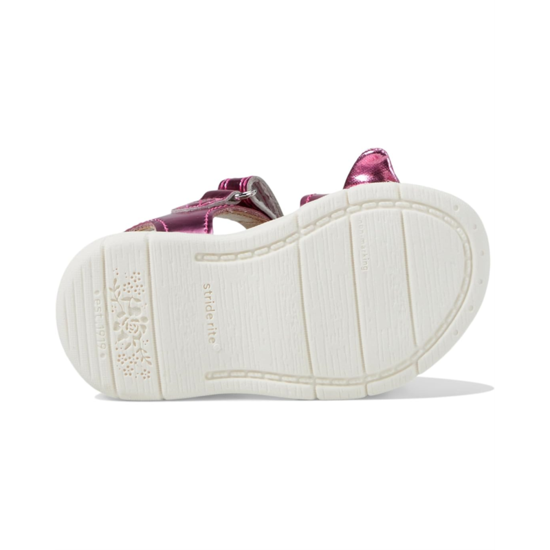 - Finish her warm weather look with the Stride Rite SR Whitney. These leather sandals are crafted with a hook and loop buckle adorned closure, knotted bow at the top, memory foam footbed and grip soles to keep her step cute and sturdy.