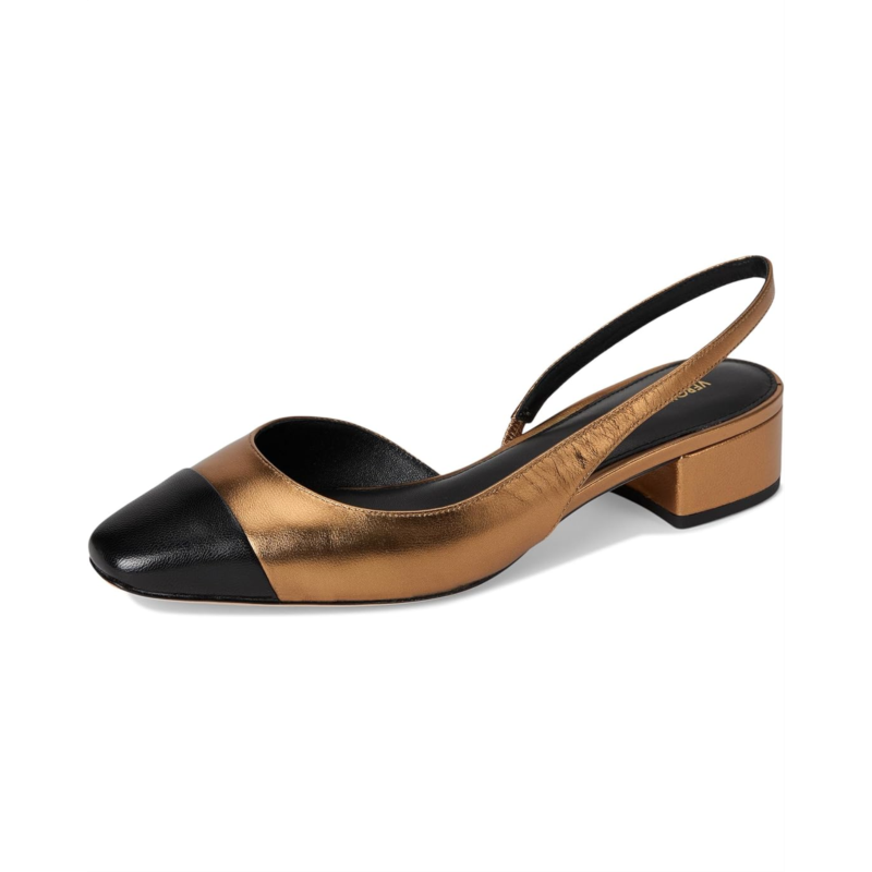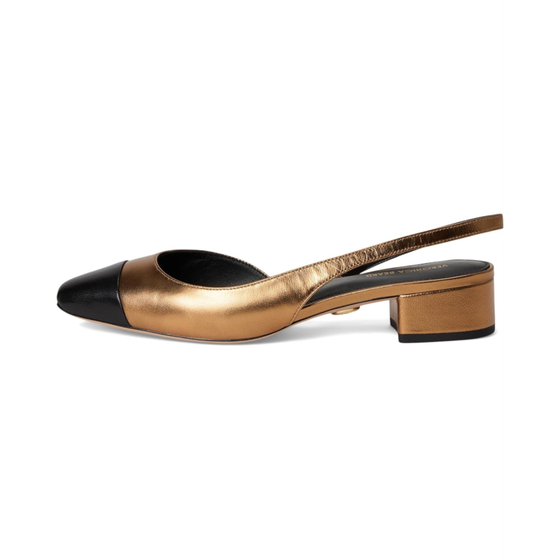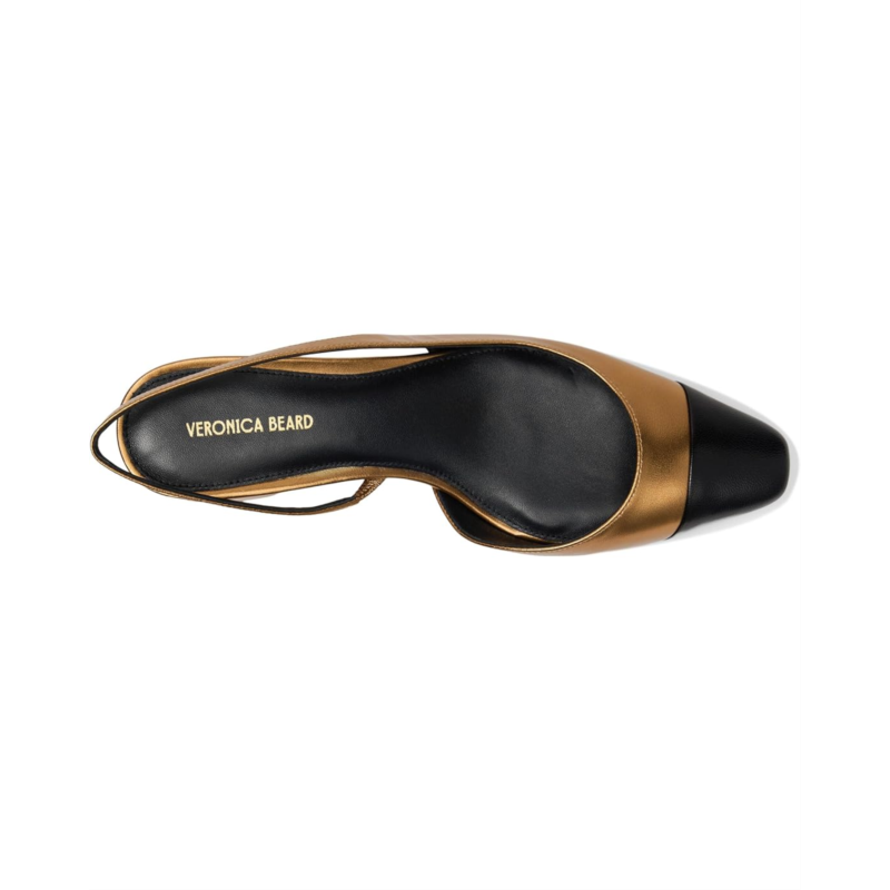 - Create the classiest statment wearing Veronica Beard Cecile Sling Heel on special occasions or parties. Designed to offer comfort at its best, the heels feature a mettalic pattern, a squared toe design, block heel, and abackstrap closure. These are crafted with a fabric upper, leather lining, and leather footbed.