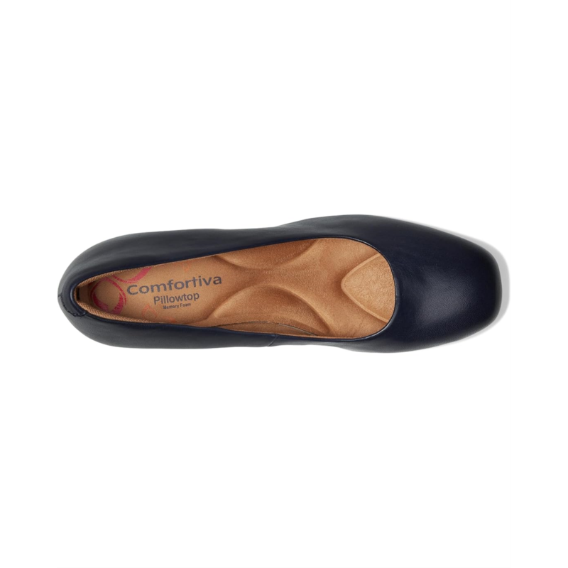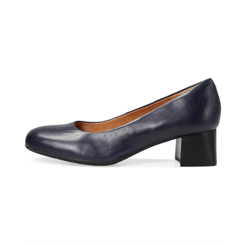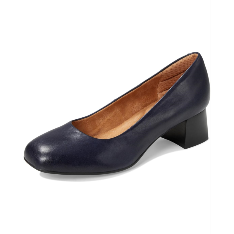 - Create versatile styling possibilities wearing the Comfortiva Peach Pumps. The soft square toed pumps feature a mid block heel and easy slip-on fit. These are crafted with a leather upper, faux suede lining, padded footbed for additional comfort, and flexible rubber outsole.