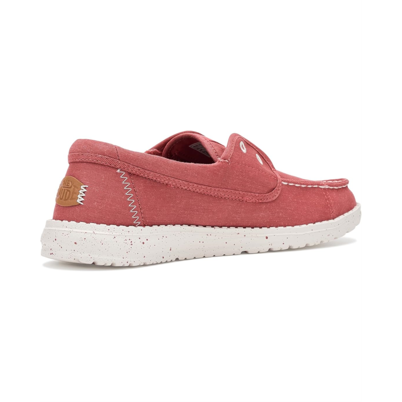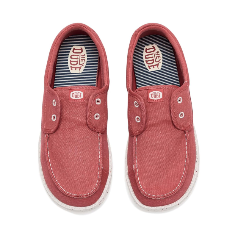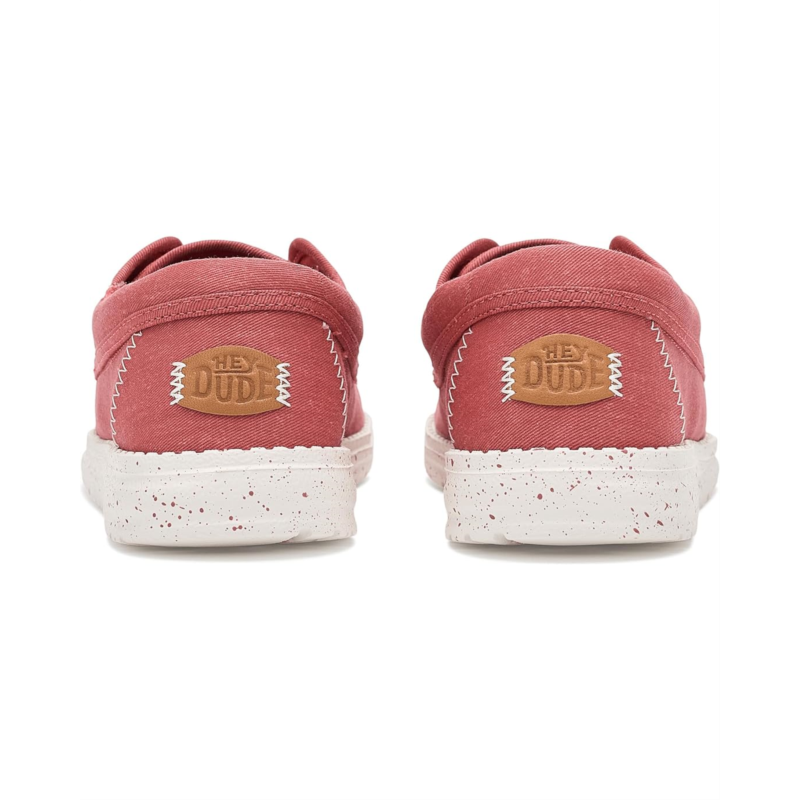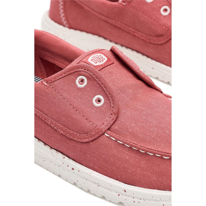 - The Hey Dude Wendy Cru Stretch Canvas shoes are comfortable slip-on sneakers that are ready to roam. These low-top shoes are designed with a removable ethylene vinyl acetate (EVA) insole and a cotton lining. Their cotton upper features easy-on elastic laces for easy wear. The Flex & Fold design of these shoes supports healthy feet, giving complete freedom of movement.