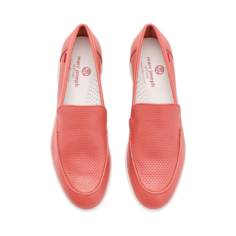 - Slip into sophistication donning the Marc Joseph New York Bayview Ln loafers. Crafted from premium genuine calf leather upper and featuring stylish perforated detailing, these loafers are a must-have for any fashion-forward individual. The genuine Napa calf leather lining, gel heel insert, and densely padded footbed provide ultimate comfort. Complete with a low-top style and subtly raised heel, these loafers effortlessly combine style and comfort.