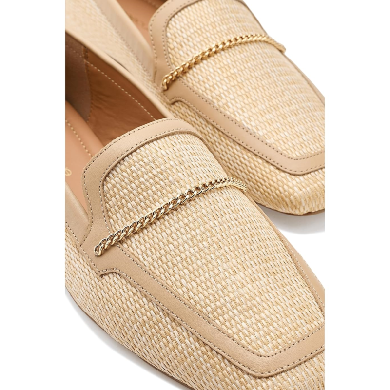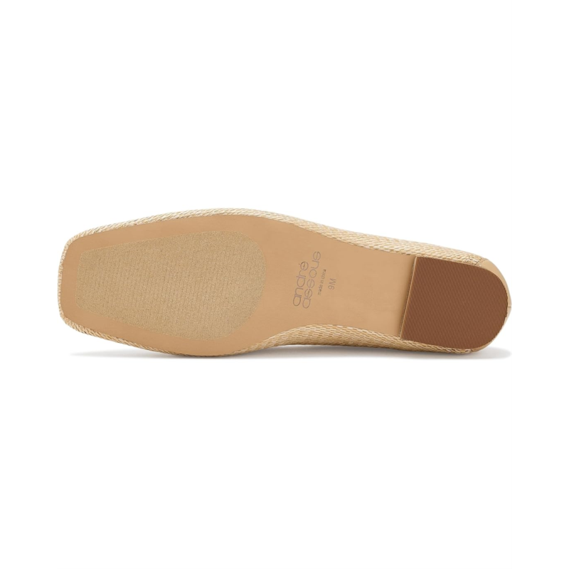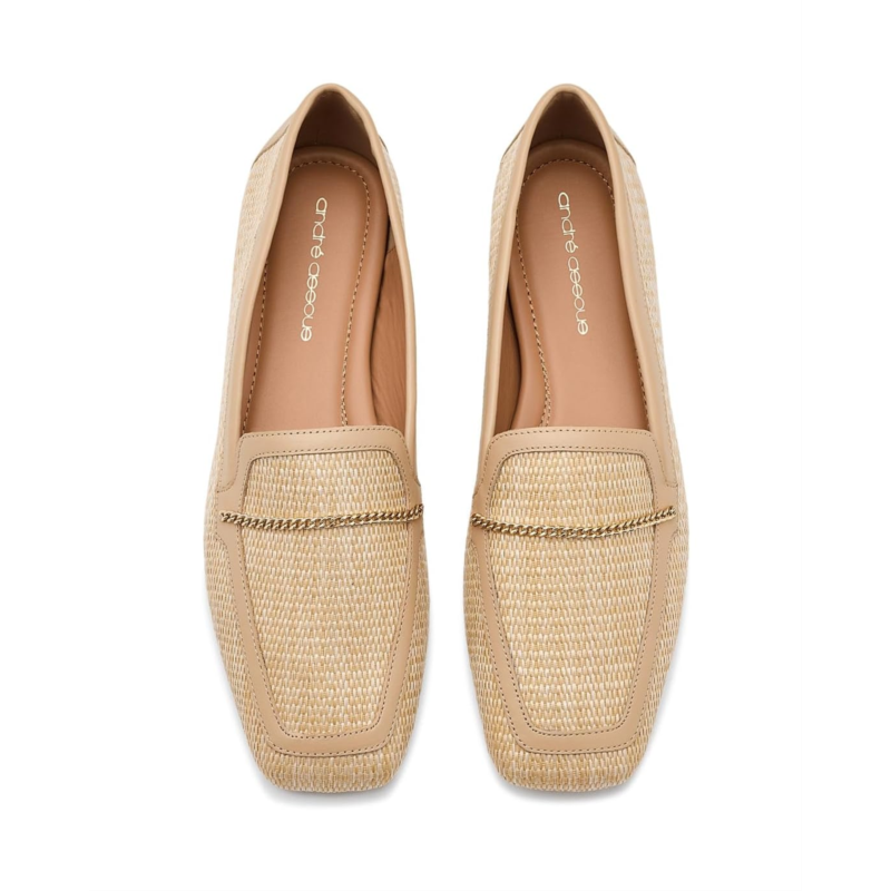 - The Andre Assous Ariane Loafer blends clean style and everyday ease. With a raffia upper, squared off toe, and delicate chain ornament detailing, this slip-on style loafer is sure to carry you from day-to-night and from work-to-weekend. It comes with a breathable leather lining and cushioned leather insole for added comfort.