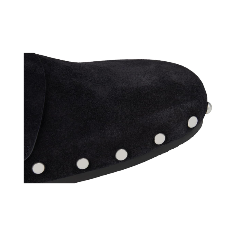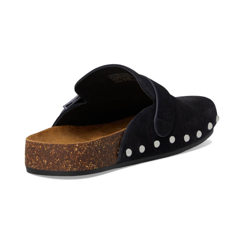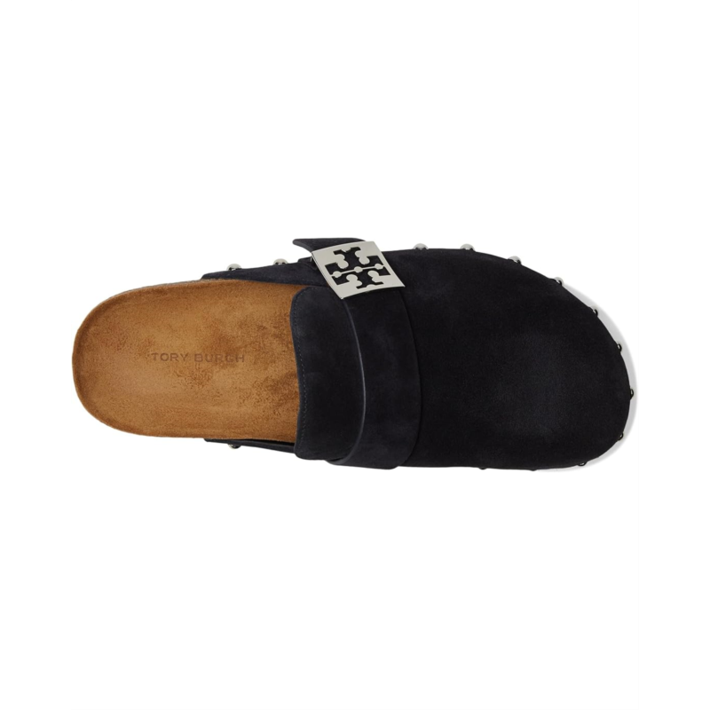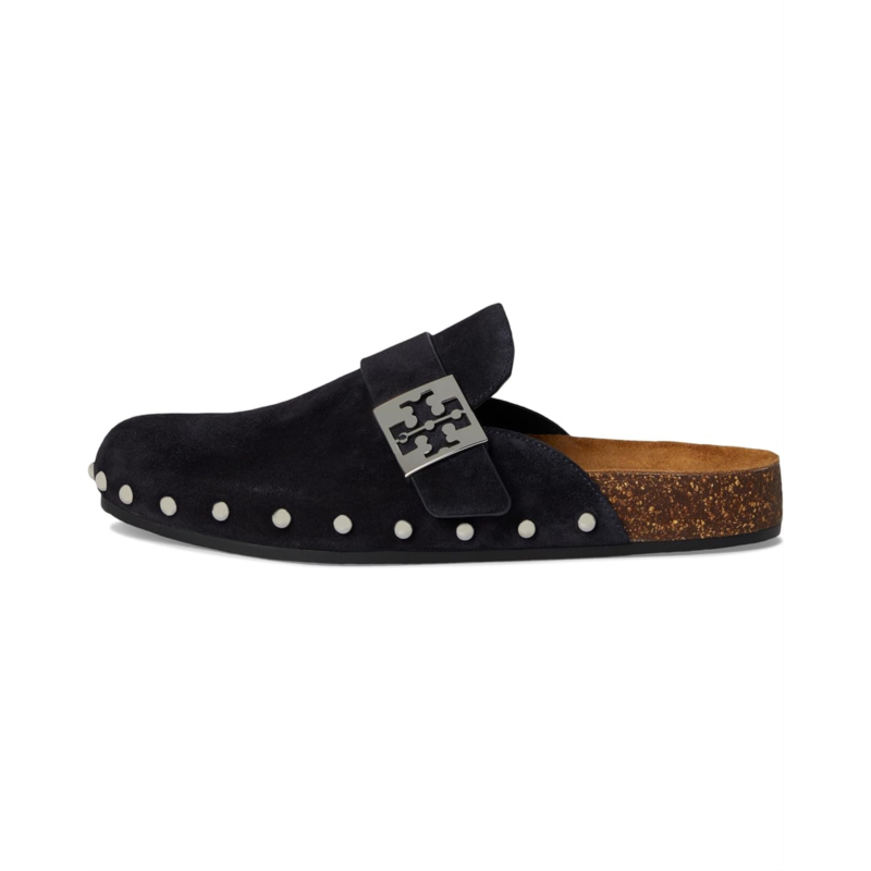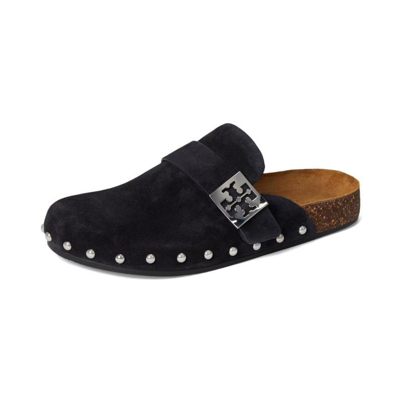 - Funky and comfortable, the Tory Burch Mellow Stud Mules are designed with robust leather and studded rivet-like hardware accenting the iconic metallic logo of the brand.
