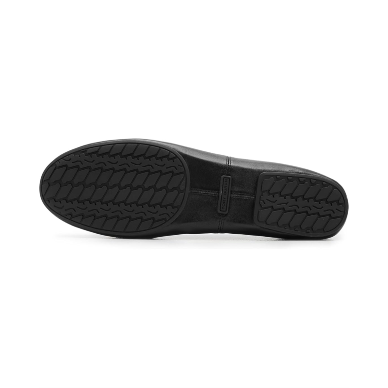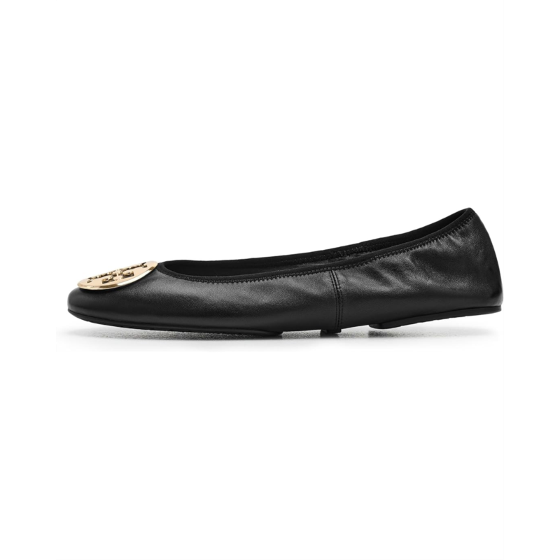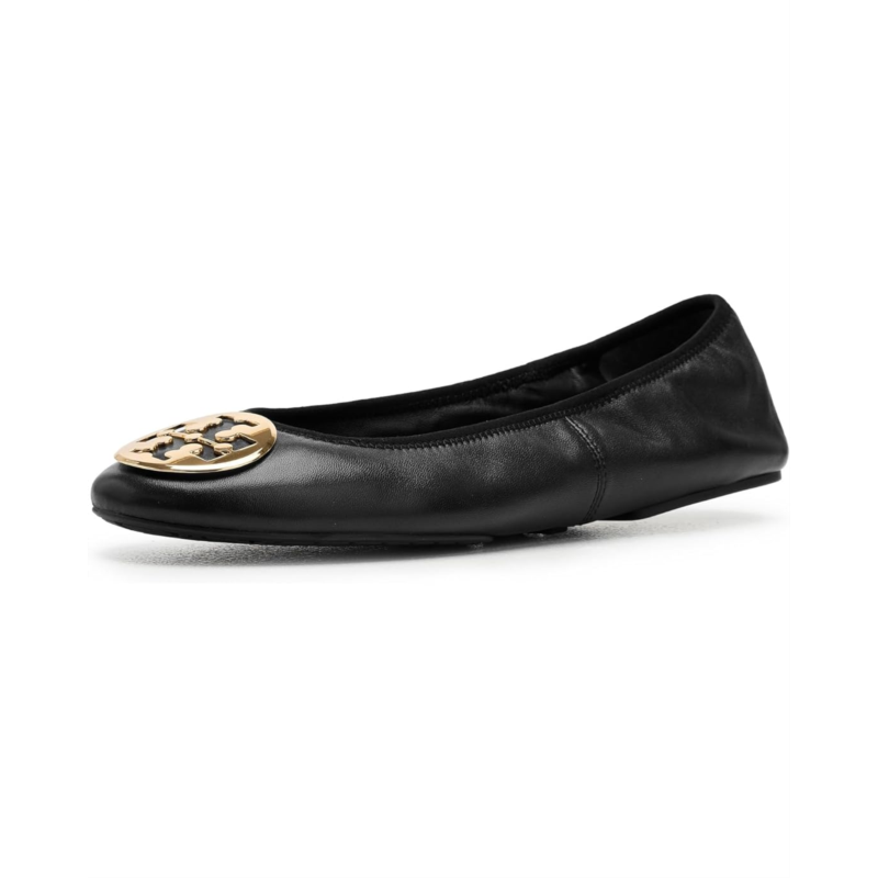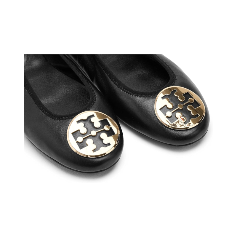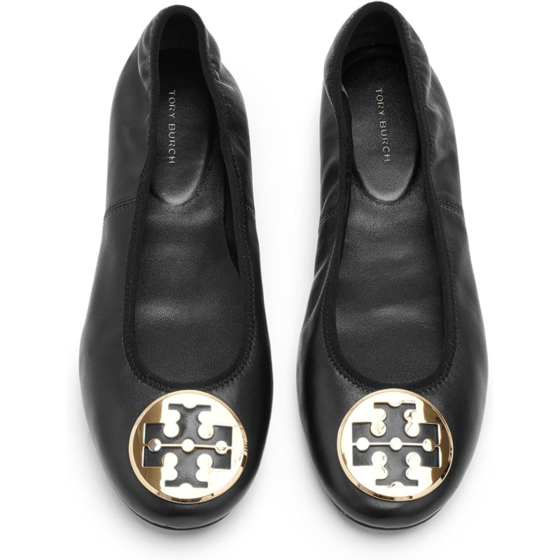- The Tory Burch Reva Travel Ballet flats are a must-have for any fashion-forward traveler. Made from super-soft leather with an elasticated top edge for a comfortable fit, these flats feature the signature metal Double T logo medallion for added style. The cushioned leather footbed and Napa leather lining provide all-day comfort, while the inverted heel cushion and tire tread outsole ensure stability and support with every step.