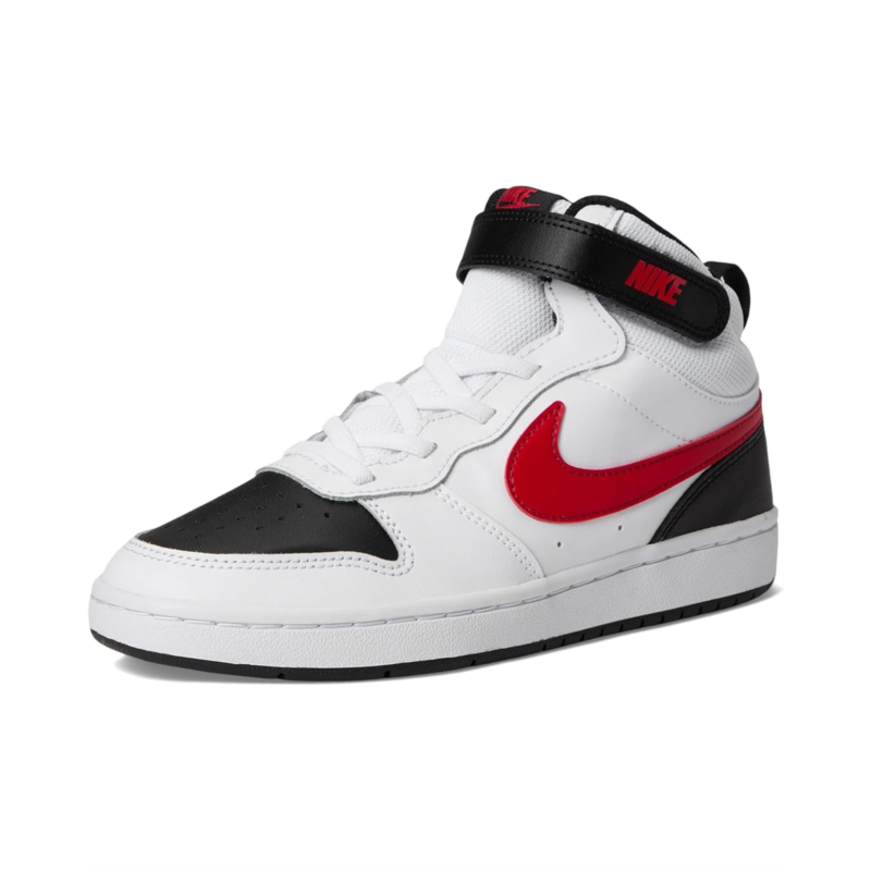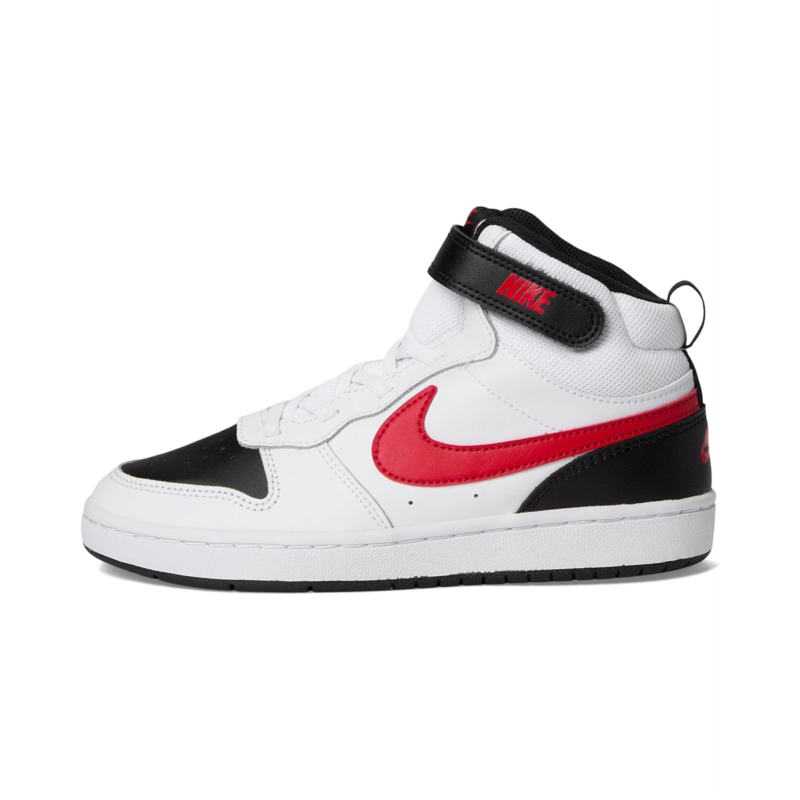 - Your little one will feel like an all-star off the court with the Nike Court Borough Mid 2. The classic mid-top design features durable leather for a premium look and feel. A hook-and-loop strap makes it easy to take the shoe on and off.