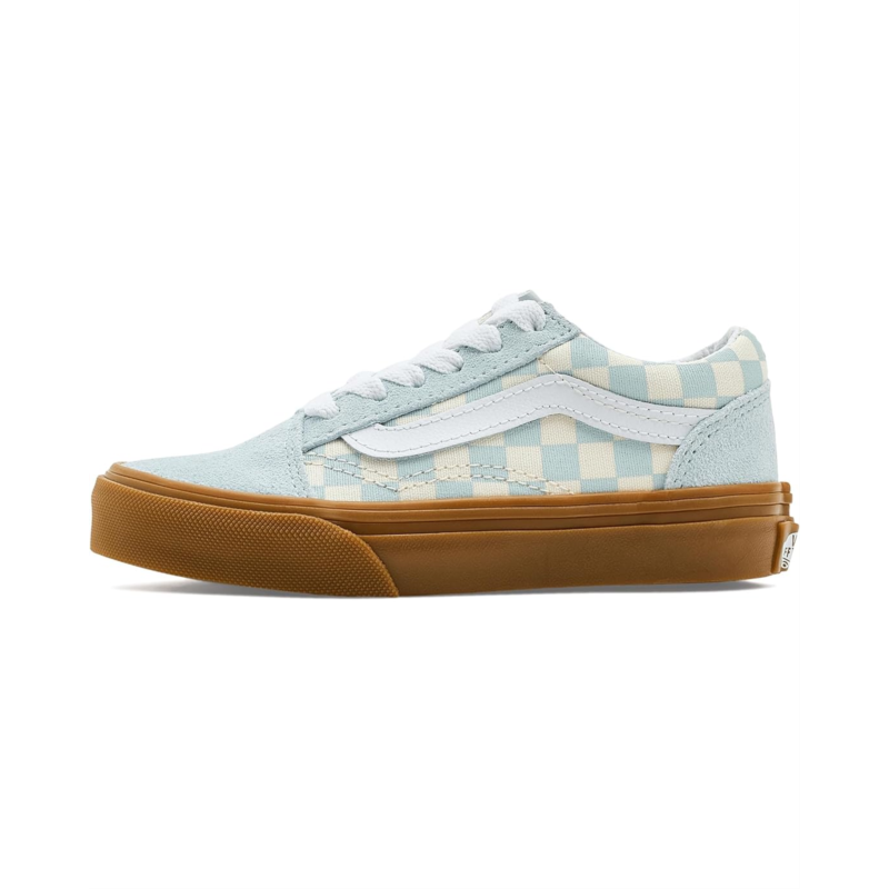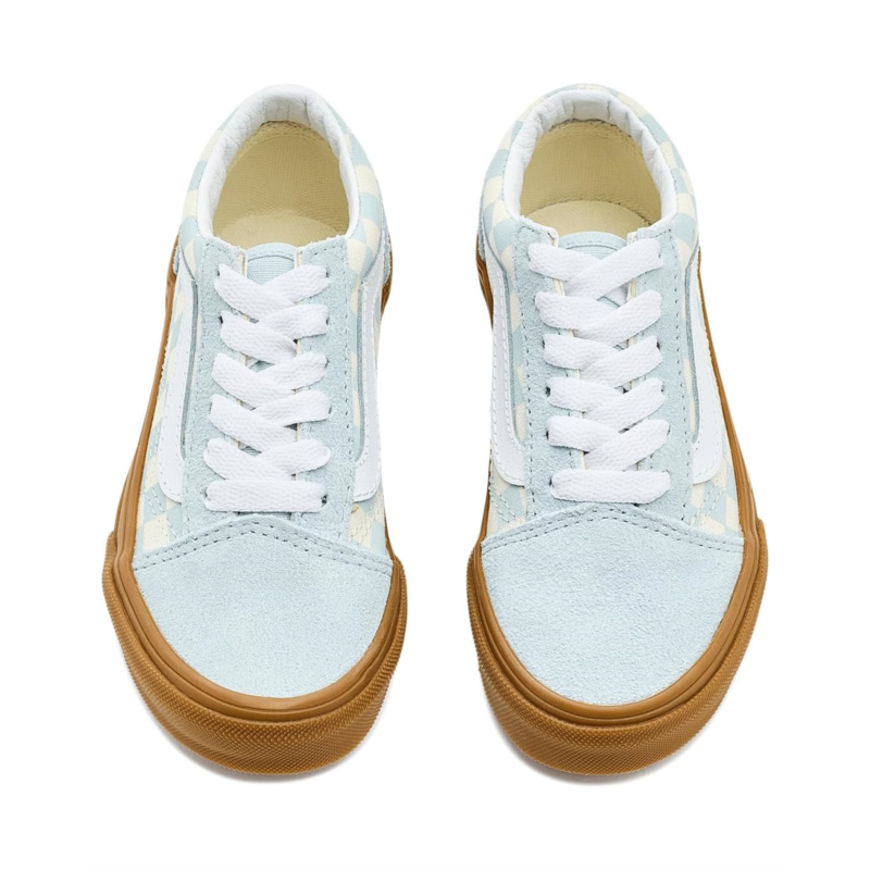 - The Vans Kids Old Skool shoes are iconic low-top, Sidestripe shoes made for kids. These sneakers are designed with a canvas upper, a rubber insole, and a cotton lining. Their reinforced toe cap provides added protection, while the checkered pattern adds to their style. These lace-up sneakers are an ideal choice to amp up your kids outfits.
