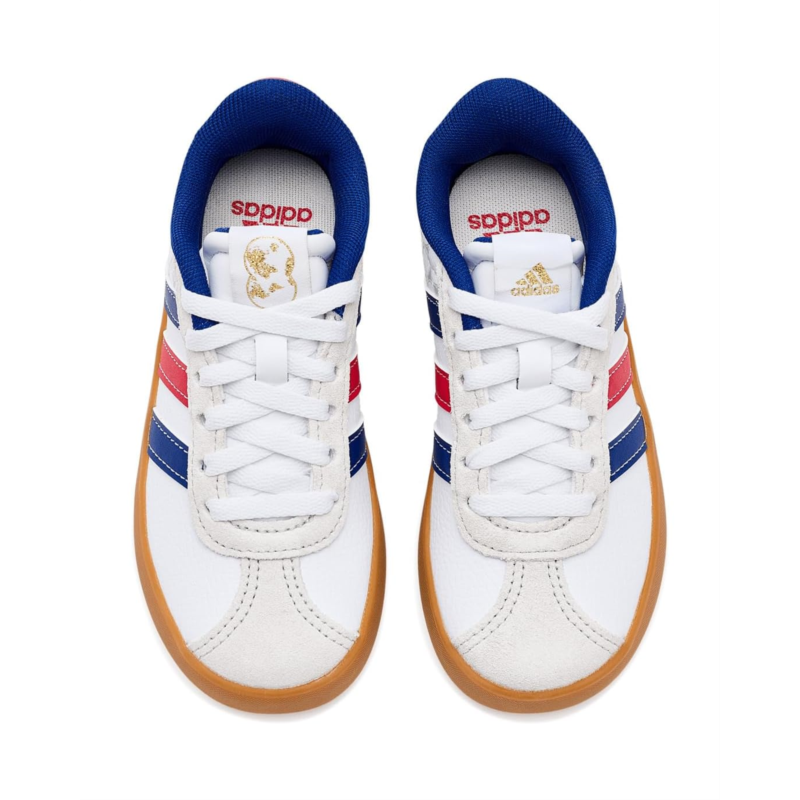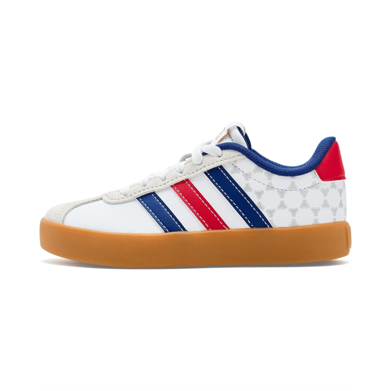 - Court-side cool for little feet, adidas Kids VL Court 3.0 Shoes. Designed for active days and effortless style, these unisex shoes feature a durable rubber upper that stands up to playtime while keeping the look clean and sporty. A natural rubber lining adds soft, breathable comfort, making them easy to wear from school hours to after-school adventures. The rubber insole and outsole deliver reliable grip and flexibility, so every step feels stable and confident. With a pull-on feel paired with a secure lace design, kids get the best of both worlds: easy wear with a snug, supportive fit.