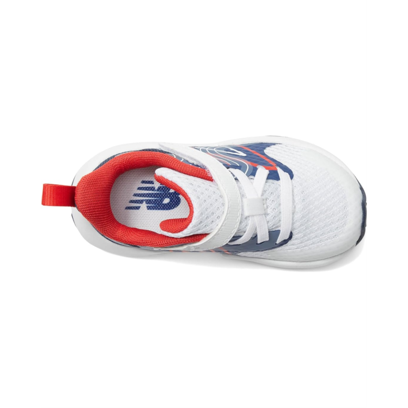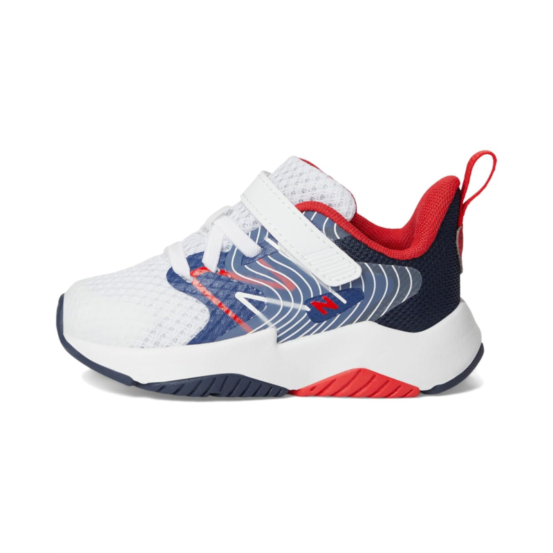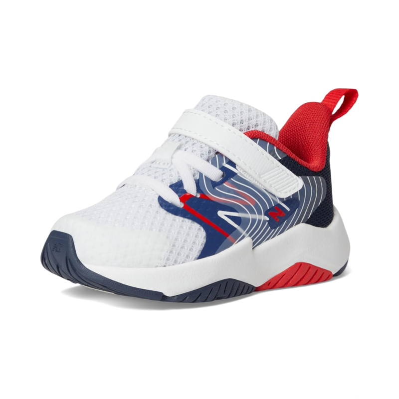 - The New Balance Kids Rave Run v2 Bungee Lace with Top Strap shoes are stylish kids shoes combining a breathable mesh upper and an ultra-cushioned, injection-molded ethylene vinyl acetate foam midsole for ultimate comfort and lightweight cushioning. Their no-sew tip provides added durability in high-wear areas. These sneakers are made of a cushioned insole for all-day comfort, while the hook-and-loop strap ensures a secure fit. Featuring a bold, kid-friendly design, these lace-up shoes are designed for your kids everyday comfort and style.