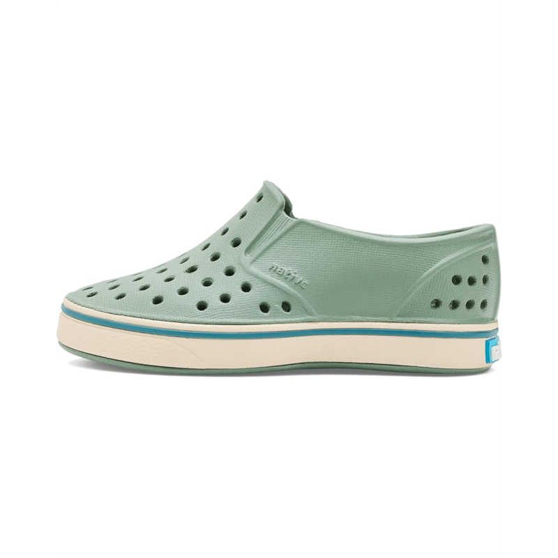- Designed for kids who love to move, explore, and play without limits, the Native Shoes Kids Miles brings together style, comfort, and practicality in one cheerful package. Crafted with a lightweight Ethylene Vinyl Acetate upper and insole, this shoe delivers cloud-like cushioning that keeps little feet happy all day long. The flexible design allows natural movement, making it perfect for school days, playground adventures, and weekend outings. The synthetic rubber lining and outsole add durability and reliable grip, helping kids stay steady on their feet during active moments. Built with an easy pull-on design, the Miles makes getting ready quick and hassle-free; no laces, no fuss, just slip on and go.