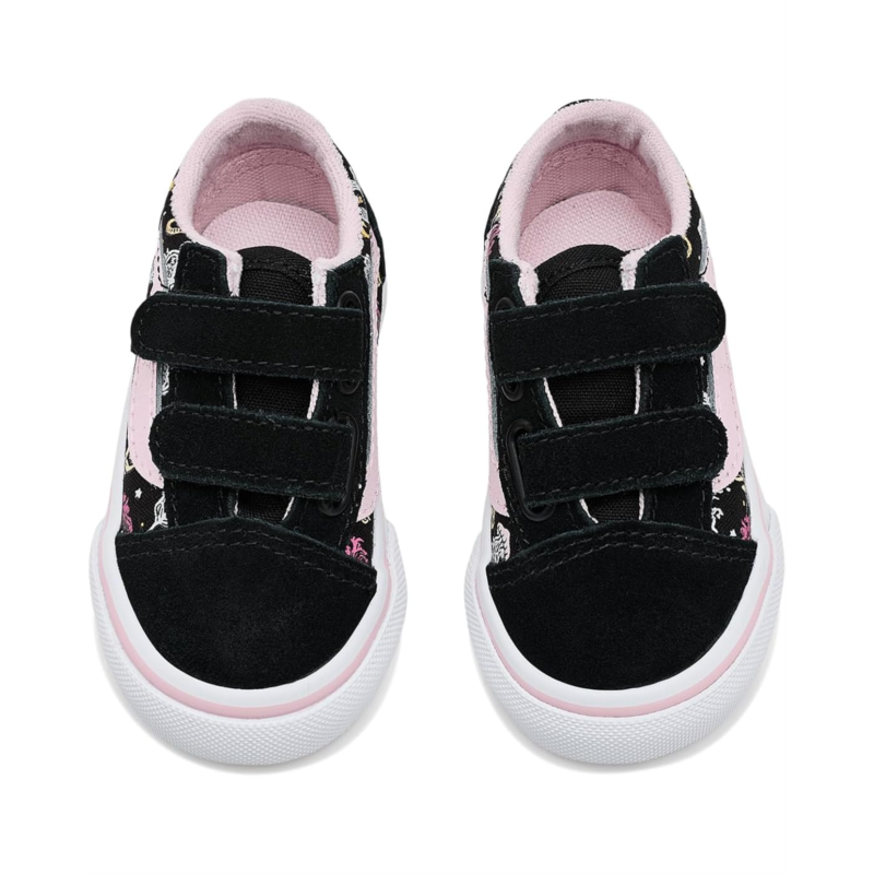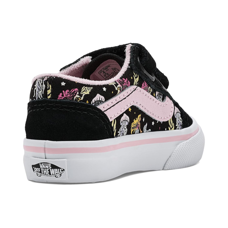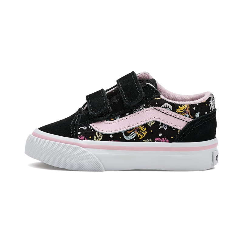 - The Vans Kids Old Skool V Sneakers combine classic skate heritage with kid-friendly comfort. Crafted with durable suede and canvas uppers, these low-top sneakers feature reinforced toe caps for added durability. A soft cotton lining and rubber insole provide everyday comfort, while the signature Sidestripe detail completes the timeless Vans look.