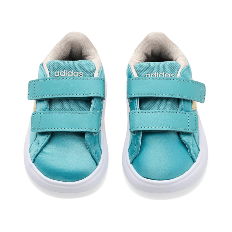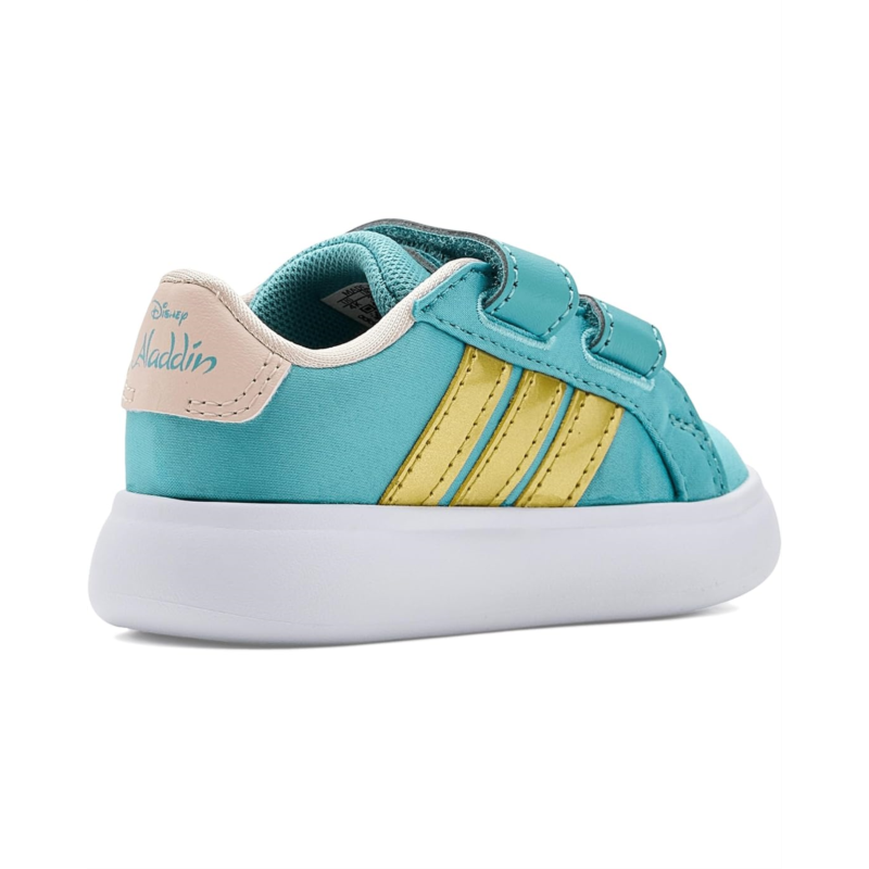 - Get ready for a magical playtime with the adidas Kids x Disney Aladin Grand Court 3.0 Shoes. This reinvented models standout feature is the delightful Disney embroidery on the sidewall. Designed for mini adventurers, these shoes are crafted with a synthetic material upper, soft one-piece ethylene vinyl acetate unit sole, and hook-and-loop closure. The fully adjustable straps offer a snug fit and make them easy to put on and take off. Little feet will be comfy, supported, and stylish as they run around. adidas have developed the go-to shoes for when kids set off on their next exciting outing.