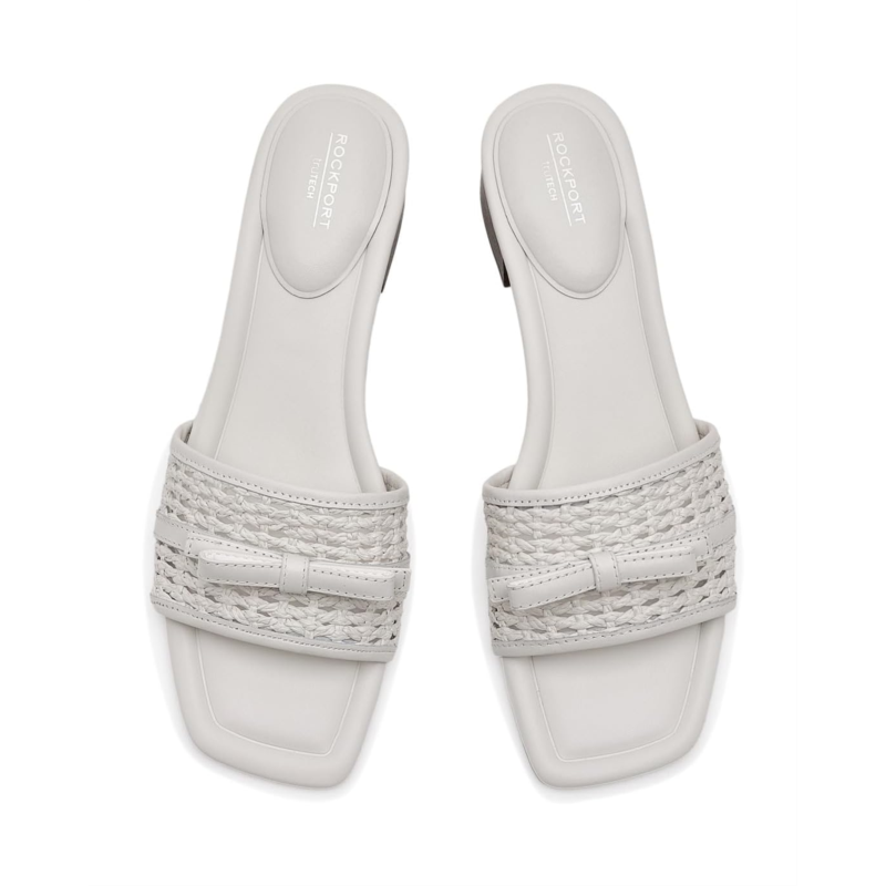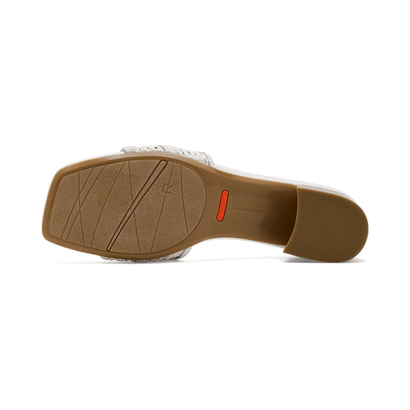 - Slay the style game with every step you take wearing the Rockport Clarice Sandals. Crafted with shock-absorbing truTECH technology, this easy, slip-on sandal provides support at the heel and rebound at the forefoot. The cushioned footbed absorbs impact at the heel, while the sturdy wood-look block heel adds grounded stability to every step. The synthetic or leather upper comes in a band-like woven construction decorated with subtle bow detail.