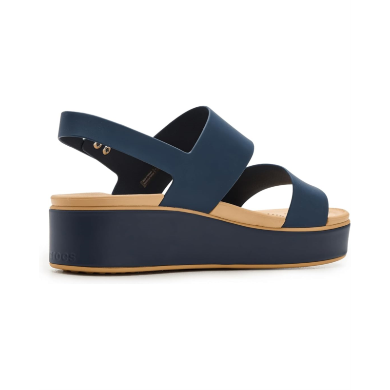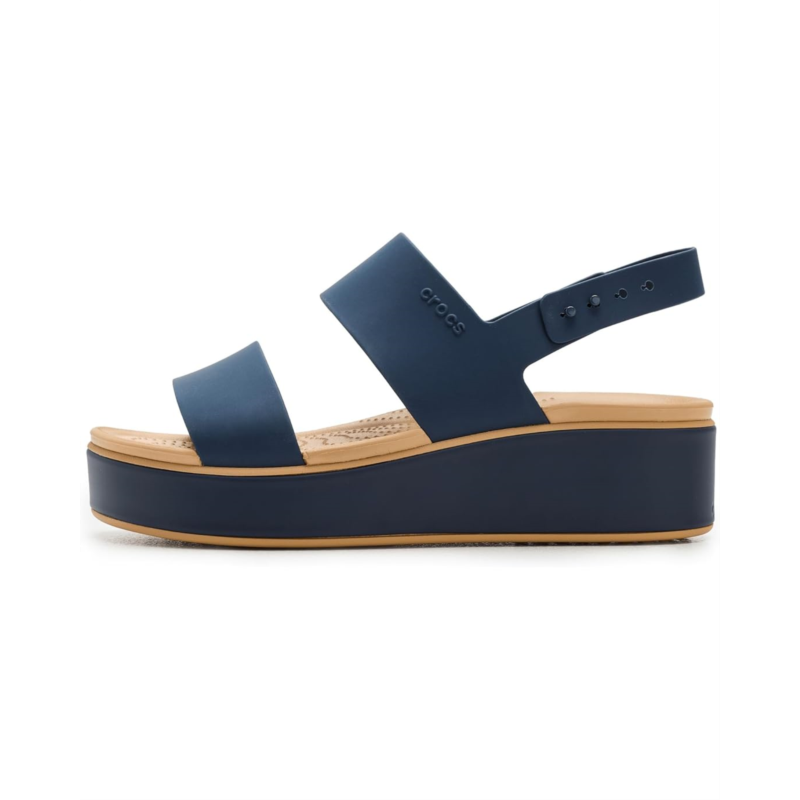 - Strike the perfect balance between fashion-forward design and comfortable lift, wearing the Crocs Brooklyn Low Wedge Sandals for confident strides. These open round-toe sandals come with soft, flexible Matlite uppers, LiteRide foam footbeds for superior all-day comfort, and an elegant two-strap silhouette with heel straps for total security. The deep heel cups and a raised insole profile ensure added support & stability, while the adjustable smart buckle heel straps with pushpin closures make on/off a cinch.