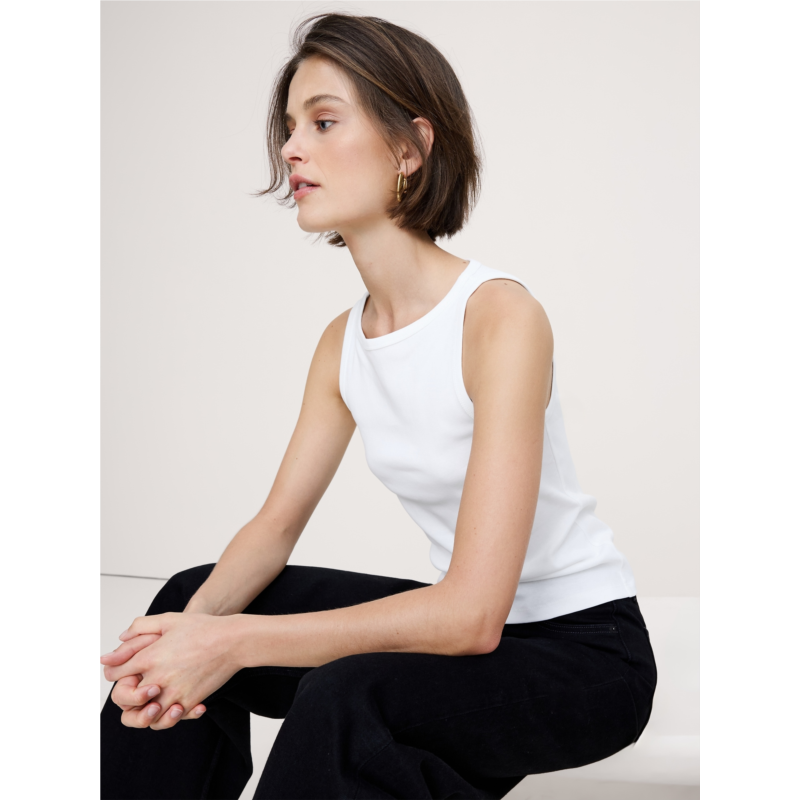 - Luxurious and softly structured, this 100% cotton tank is the perfect weight for all seasons. Plus, we added a seam at the center-back to better define the waist.