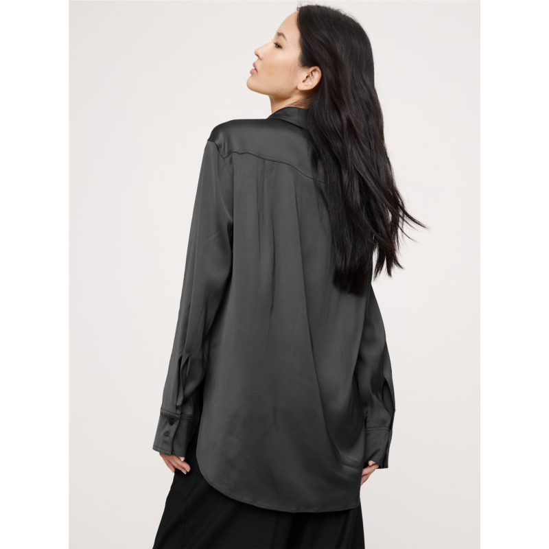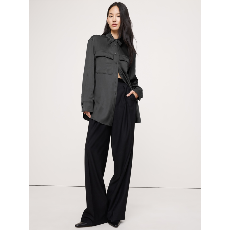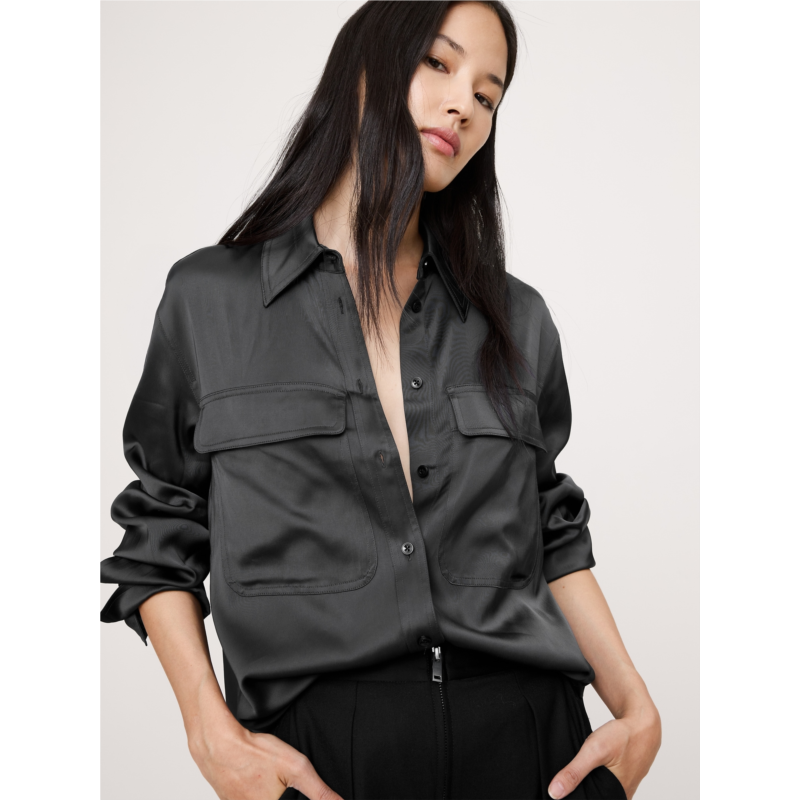 - An exploration of luxe utility, this oversized shirt has chest pockets for a utilitarian twist on the classic button-down shirt. Cut in a beautiful stretch-satin fabric.