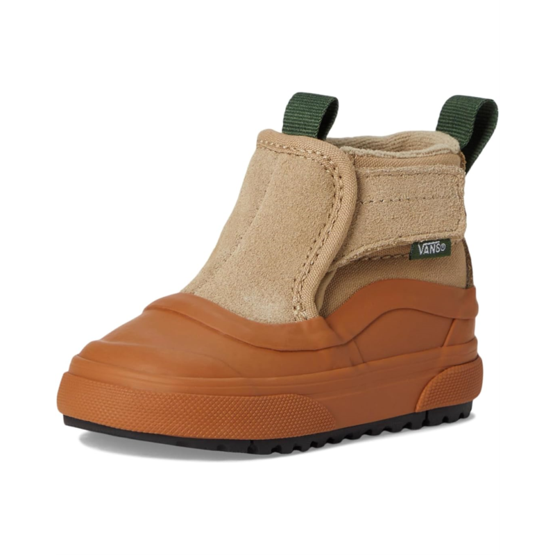 - Let your kid tackle it all wearing the Vans Kids MTE Slip-On Hi Terrav boots. Built for adventure with reliable water resistance, a Primaloft insulation package, and upgraded traction, these all-weather kids stompers protect your kids feet from the elements. The water-resistant leather upper provides a splash and puddle guard around the shoe and over the toe, resulting in reliable, comfortable, breathable moisture management protection. These boots are made of a single-density UltraCush molded EVA footbed and synthetic rubber lining for upgraded comfort. The hook-and-loop closure on both sides ensures easy on and off.