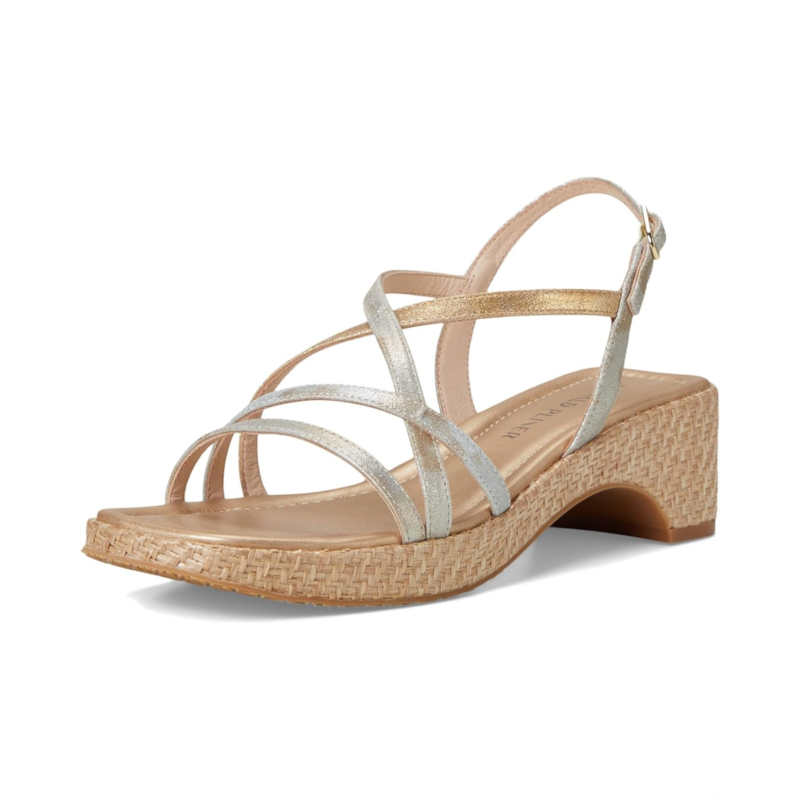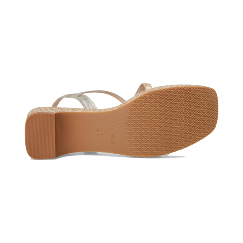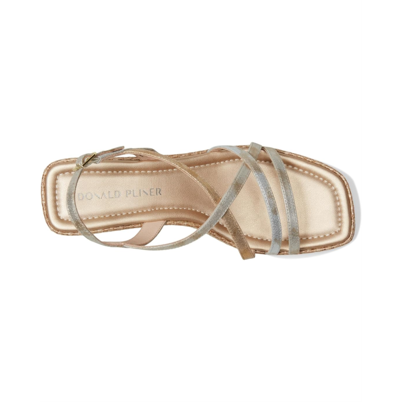 - Look no further than the Donald Pliner Rosalie sandal, featuring a strappy crinkle metallic leather upper with an adjustable buckle closure for a secure fit. A platform and low block heel provide the perfect amount of lift, while memory foam insole padding keeps you comfortable on your feet all day. This style is finished with a rubber outsole that gives it non-slip traction.