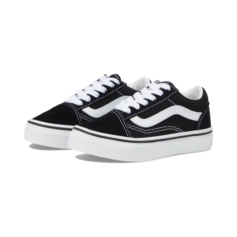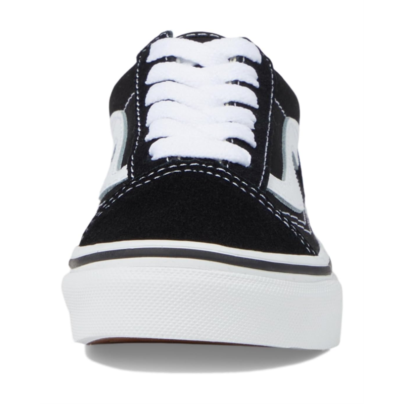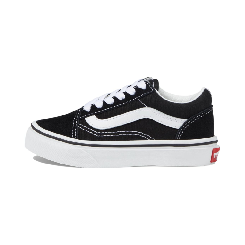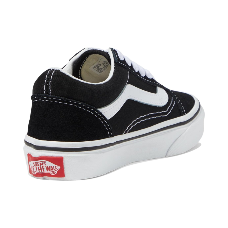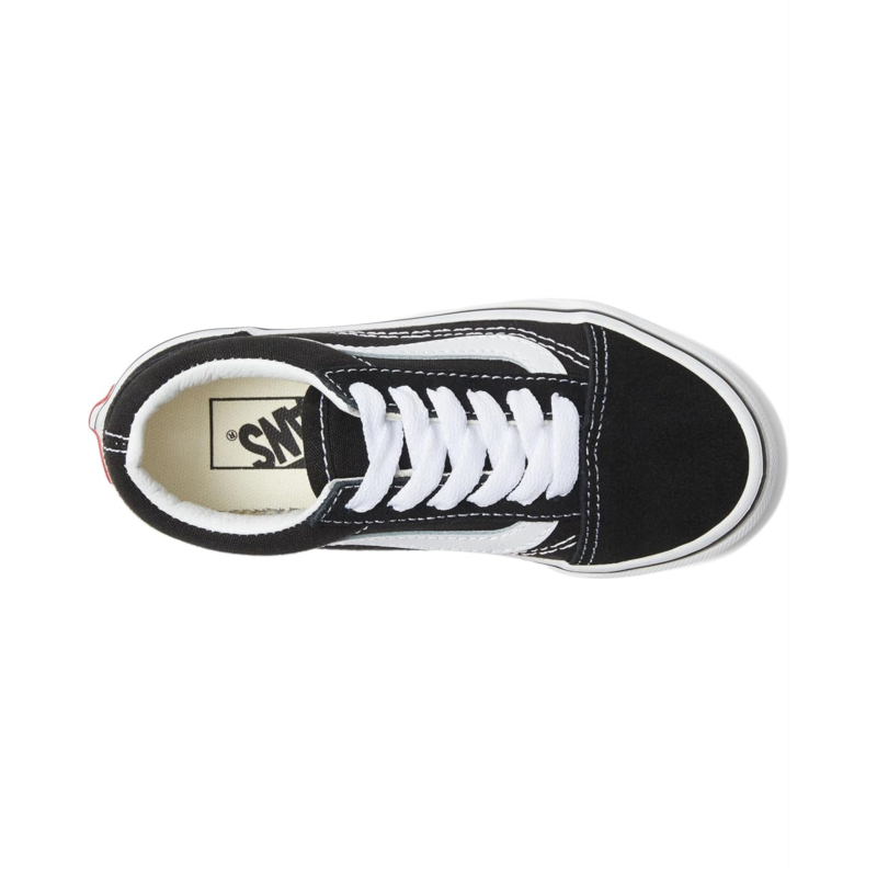 - The Vans Kids Old Skool shoes are iconic low-top, Sidestripe sneakers designed to style up your kids outfits. These low-top shoes are made of a textile insole and lining. Their leather and textile upper has a lace-up design and classic side-stripe detailing. The platform midsole is styled with a signature Vans heel patch. These lace-up sneakers feature reinforced toe caps for added protection.