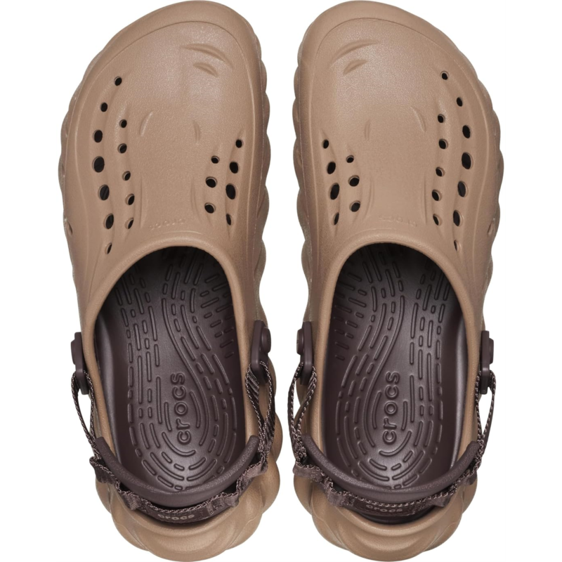- Spend your weekends in the trendy and statement-setting style of the quick to dry and pivotable turbo heel strap design of the Crocs Echo Clogs.