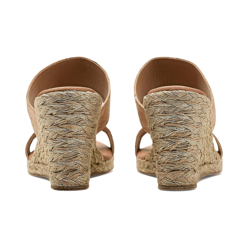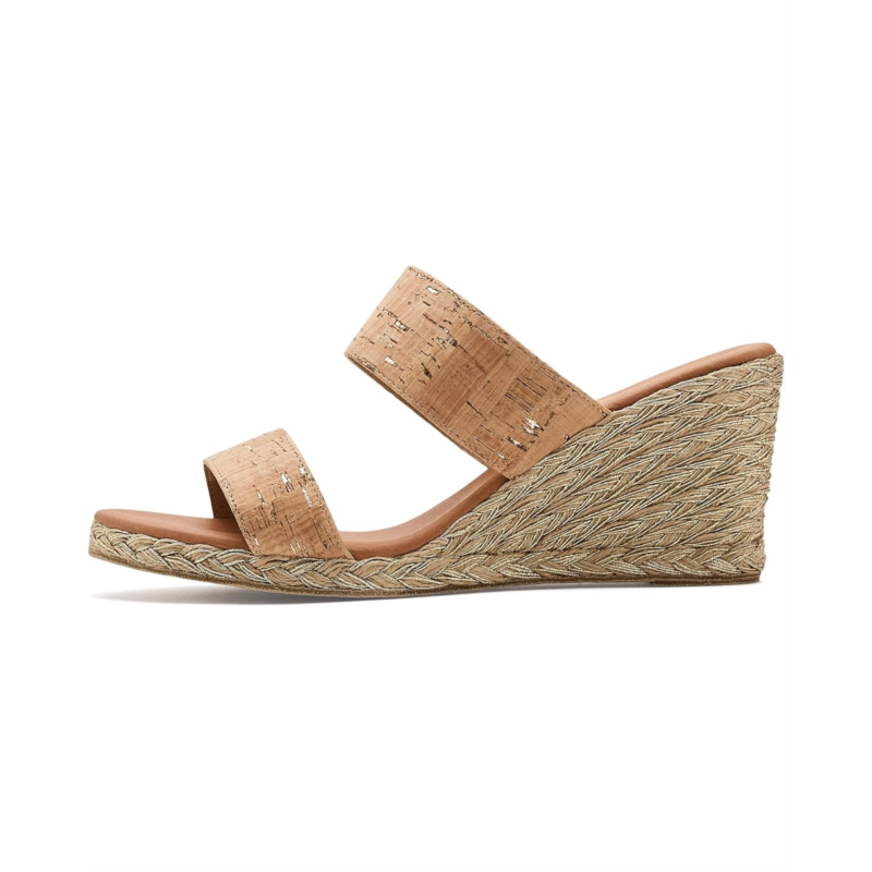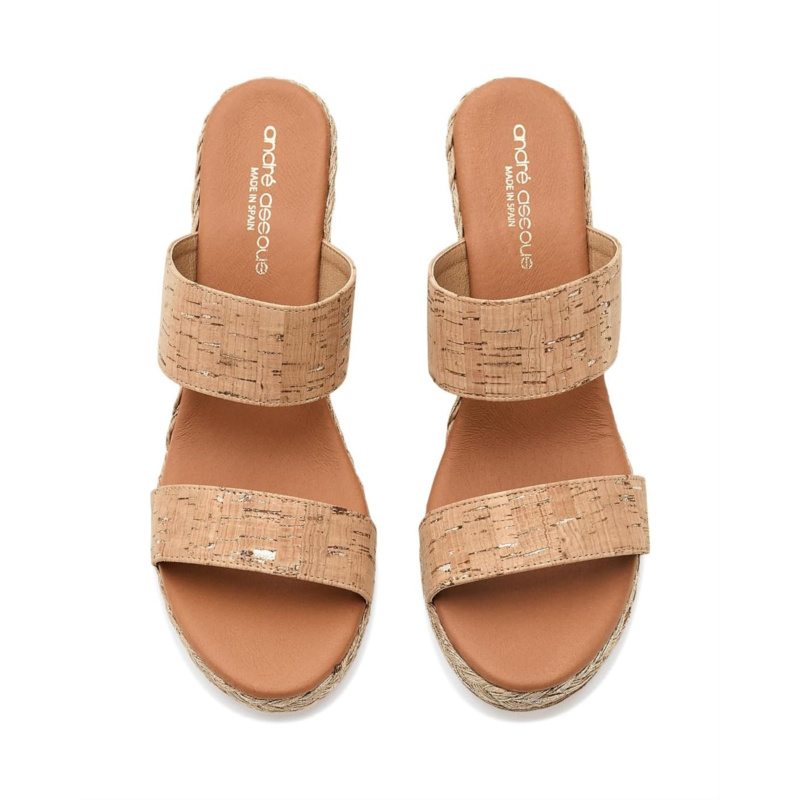 - The Andre Assous Nolita Cork sandals are an eye-popping espadrille wedge that lifts your legs and spirits. These heeled sandals are handcrafted for comfort and feature a raffia upper and soft cushioned leather insole for a fashionable and comfortable look. Their leather lining keeps your feet cool and comfortable. Walk with style wearing these slip-on heels.