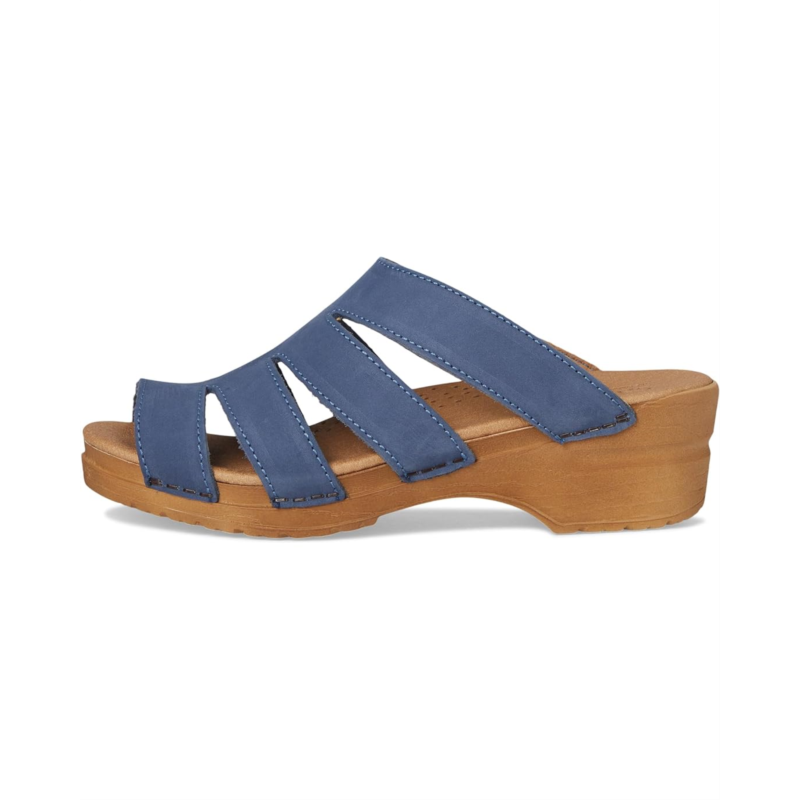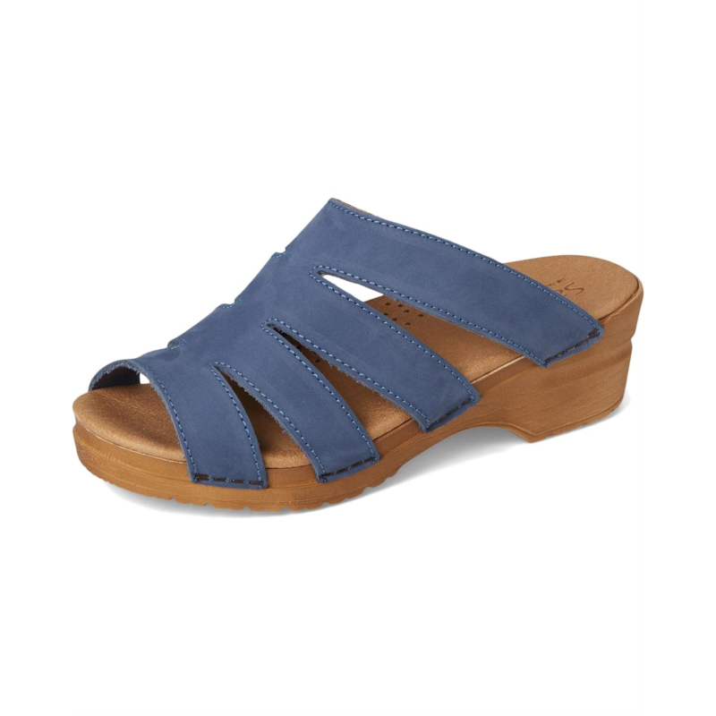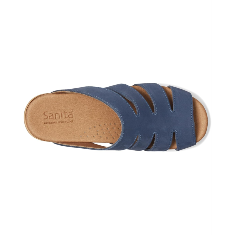 - Made with a super durable, shock-absorbent polyurethane rocker-bottom outsole, the Sanita Monika sandals are APMA-approved and easy to slip on and off. These heeled sandals are made of a leather upper and lining. The anatomically correct footbed with breathable cushioned microfiber insole makes them comfortable to wear for long hours.