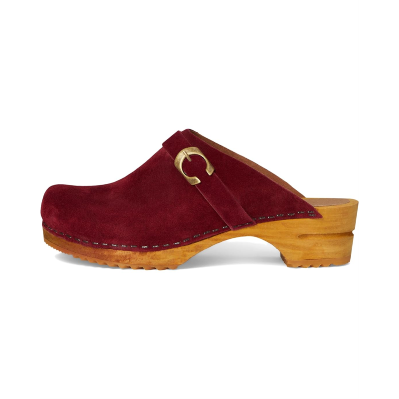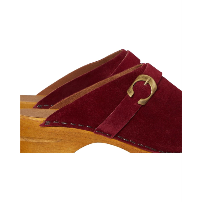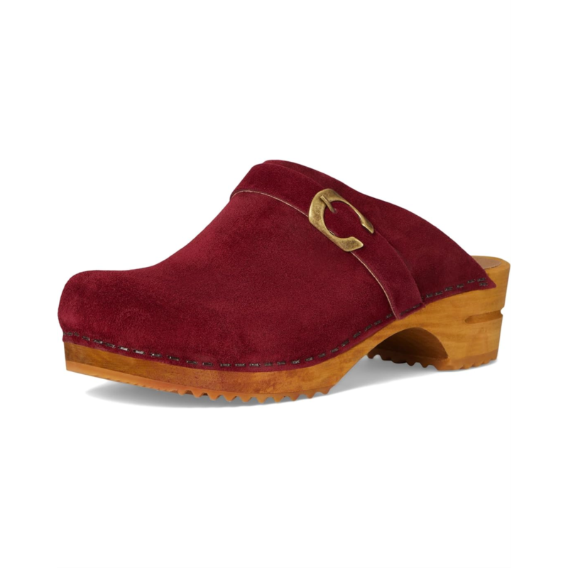 - Indulge in pure comfort and exceptional craftsmanship wearing Sanita Hedi! These open-back wood sole clogs feature a luxurious suede leather upper and a stylish buckle for a perfect fit. Designed with a wood midsole and natural rubber outsole, they offer superior comfort and traction. Crafted from sustainable FSC-certified lindenwood and genuine European leathers, these clogs combine eco-friendly materials with classic design. Slip into effortless style and support the planet with every step you take!