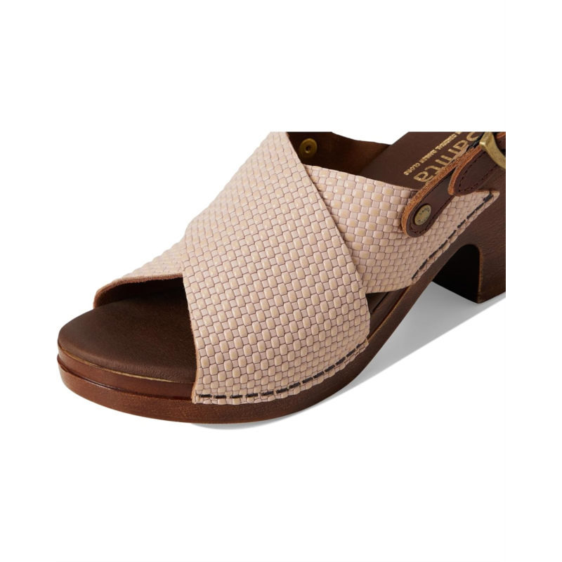 - Made from durable polyurethane and a fully padded insole with arch support, the faux wood outsole maintains a stylish and trendy wood look while maintaining the cushion and support synonymous with Sanita Sijo sandals. The cross-over straps and adjustable heel straps make a comfortable fit.