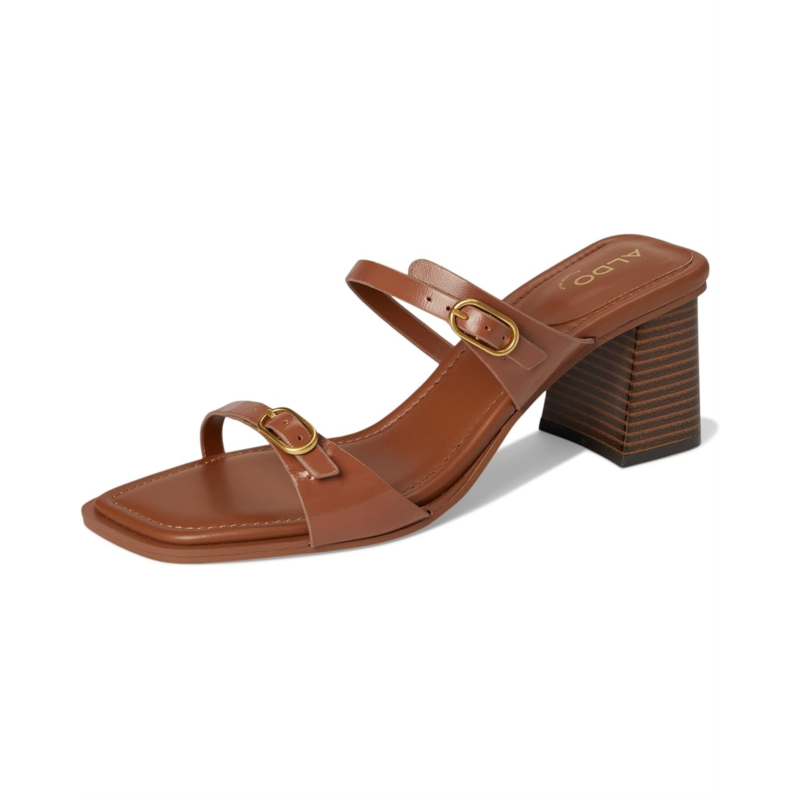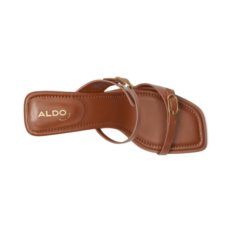 - Keep up with the glam and class when wearing this ALDO Maymay squared toe sandal. Featuring slim buckle straps and a stacked block heel, this slip-on footwear is designed with ALDO Pillow Walk technology for all-day cushioned support.