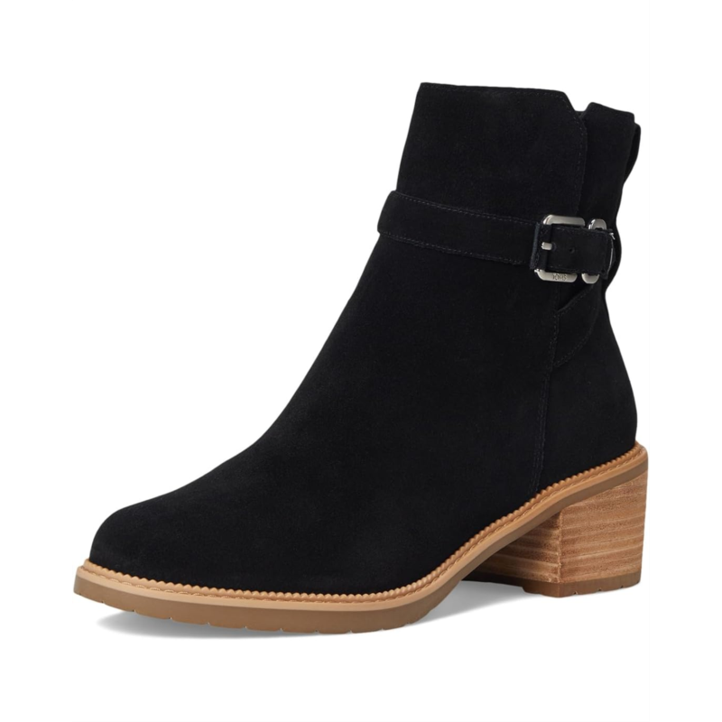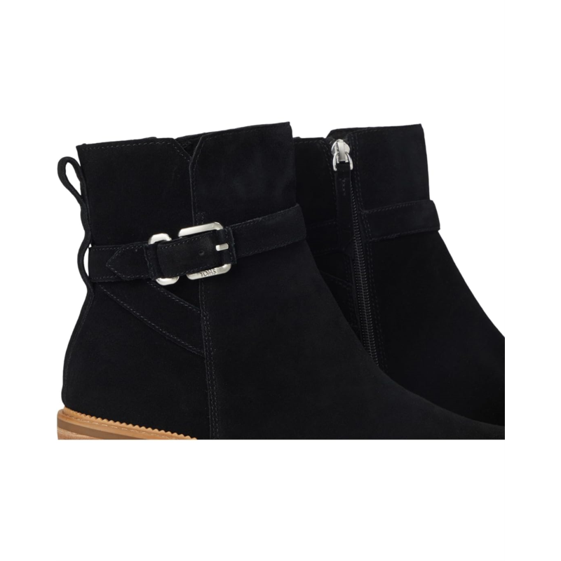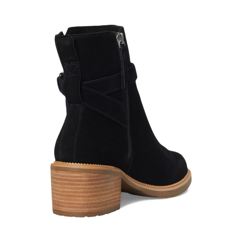 - The TOMS Hailey Buckle boots are block-heeled boots with a mini lugged rubber outsole and buckle hardware. Their medial zipper ensures easy on and off. These calf-high boots are made of a polyester lining and a custom CloudBound foam insole for all-day comfort and support. The suede upper features a wrapped strap detail. These heeled boots make a stylish addition to your footwear collection.