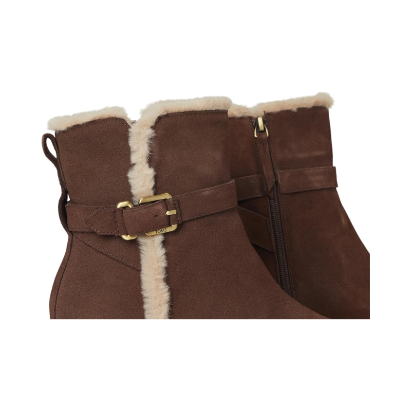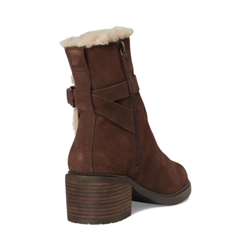 - The TOMS Hailey Buckle boots are block-heeled boots with a mini lugged rubber outsole and buckle hardware. Their medial zipper ensures easy on and off. These calf-high boots are made of a polyester lining and a custom CloudBound foam insole for all-day comfort and support. The suede upper features a wrapped strap detail. These heeled boots make a stylish addition to your footwear collection.
