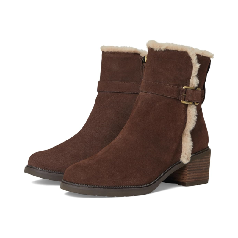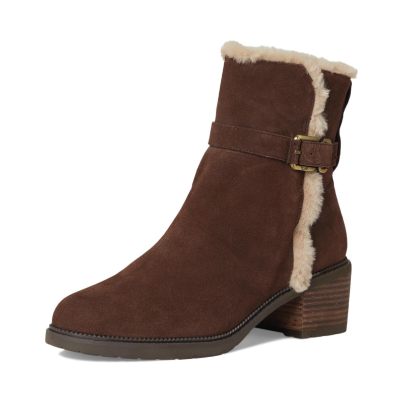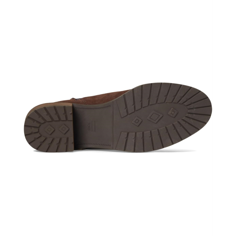 - The TOMS Hailey Buckle boots are block-heeled boots with a mini lugged rubber outsole and buckle hardware. Their medial zipper ensures easy on and off. These calf-high boots are made of a polyester lining and a custom CloudBound foam insole for all-day comfort and support. The suede upper features a wrapped strap detail. These heeled boots make a stylish addition to your footwear collection.
