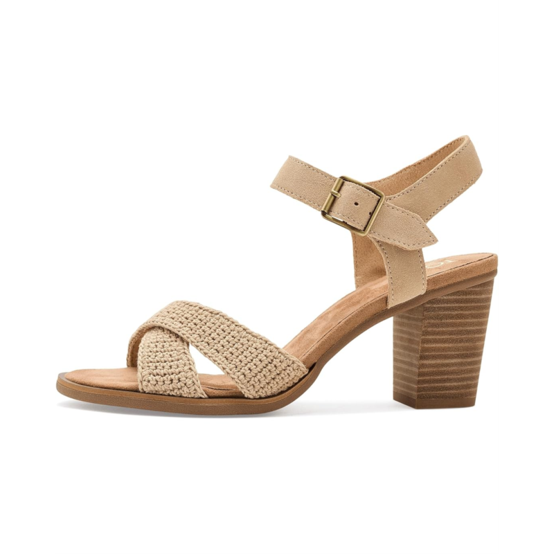 - The TOMS Majorca Ankle Strap sandals are strappy sandals featuring block heels and an ankle strap. These heeled sandals are made of a nylon upper and a polyester lining. Their Custom CloudBound foam insole offers all-day comfort and support. The adjustable buckle closure offers a perfect fit. Match your party outfits and dresses with these slip-on sandals.